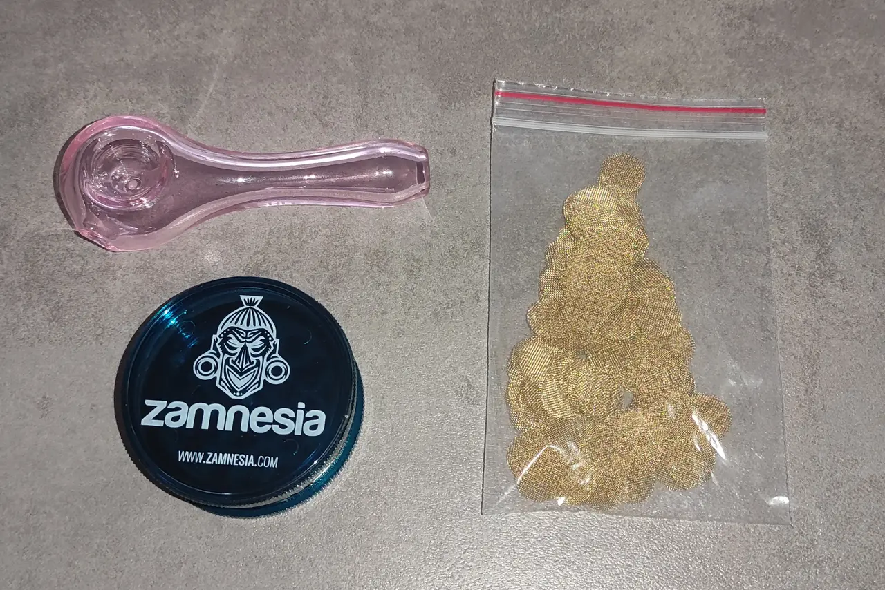Mitbestellt haben wir auch 2 Pfeifen, einen Acrylgrinder von Zamnesia und Siebe um etwas Abwechslung zum Vaporizer zu bekommen.