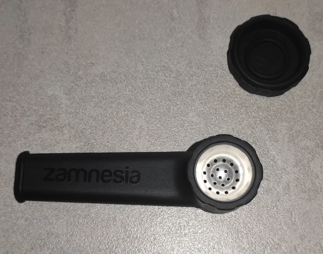 Die zweite Pfeife ist von Zamnesia selbst und besteht aus Silikon mit einem Metallsieb eingebaut, mithalten mit der Glaspfeife kann diese jedoch nicht auch weil man den Geruch und Dreck nicht mehr so richtig rausbekommt wie das bei dem etwas teurerer Glaspeife von Ehle der Fall ist. Dennoch ist sie vom Geschmack ausreichend und zum Beispiel für Unterwegs sehr gut geeignet.