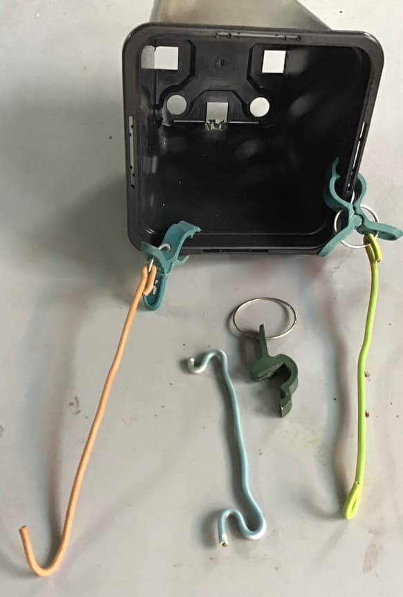 Kleiner Spreizer, Draht mit Klammer und der Grund warum diese Klammern shice sind.