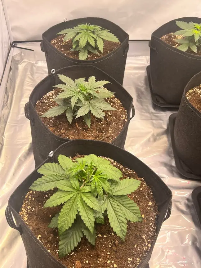 Nachdem ich die kleinen dann in die großen Töpfe gesetzt hatte, hab ich alle einmal mit 2,5l Wasser mit einem etwas erhöhen ph Wert angegossen.
