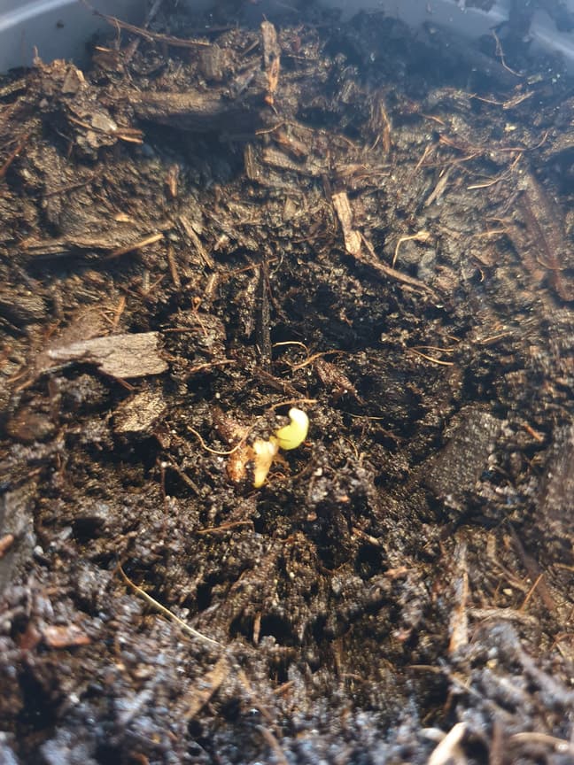 Ich habe vor einer guten Woche ein paar Samen einer Monstera gepflanzt. Jetzt schaut bei der ersten "etwas" aus der Erde.