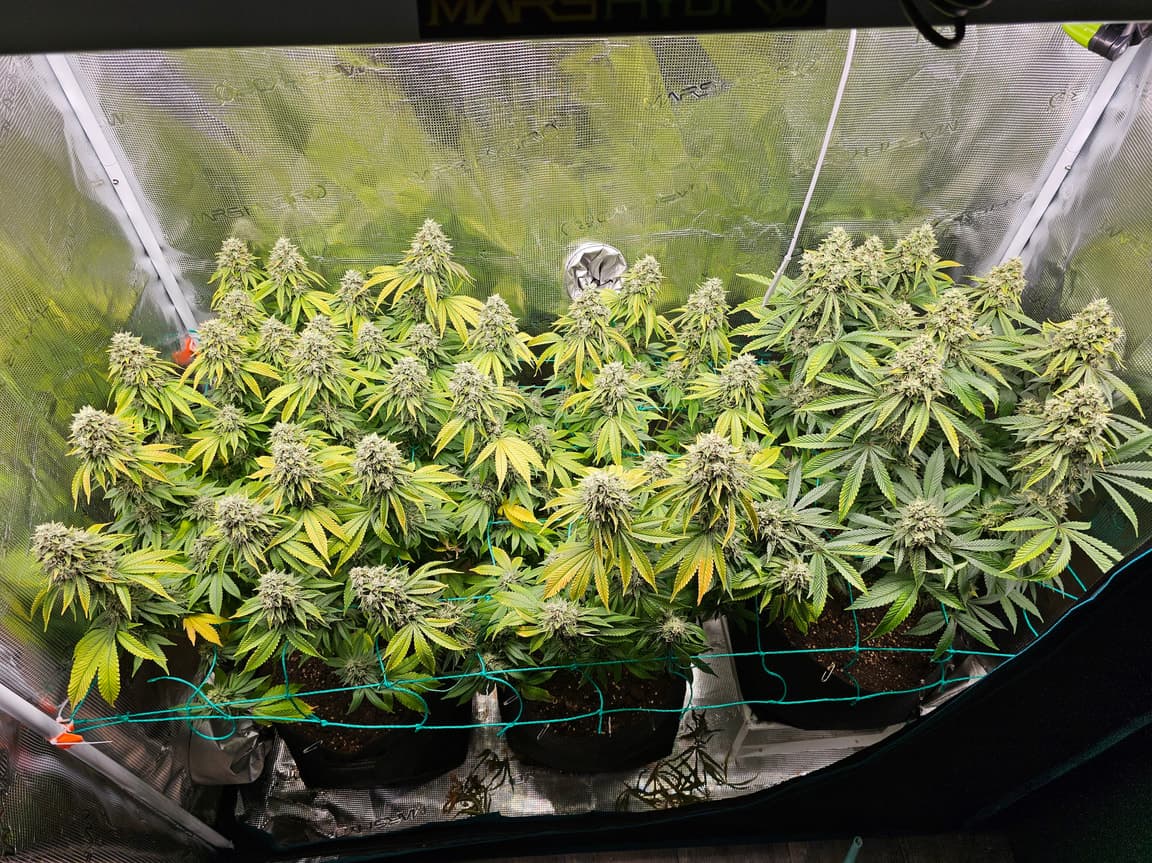 so, die sind jetzt fast 11 wochen in blüte die äste können sich alleine kaum noch halten und trichome sehen gut aus.