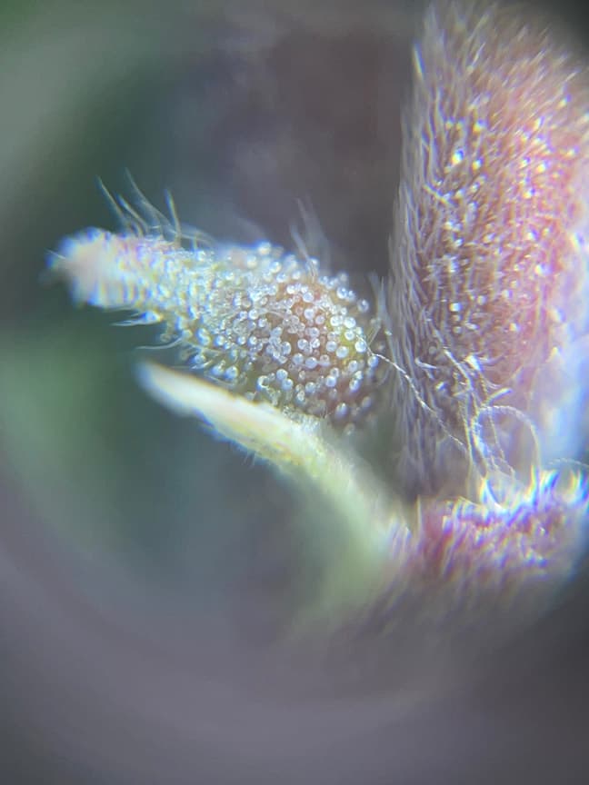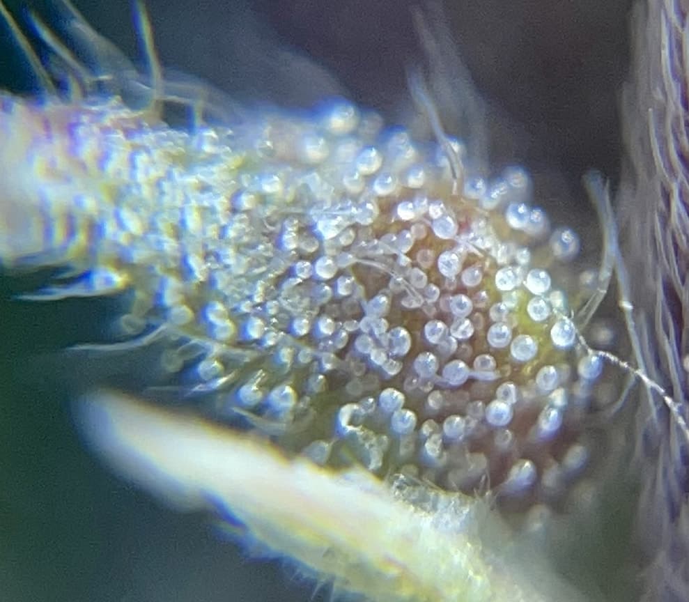 Hab es mir unterm Mikroskop angeschaut , Junge NICHT MAL MILCHIGE TRICHOME ... einfach durchsichtige :D :D