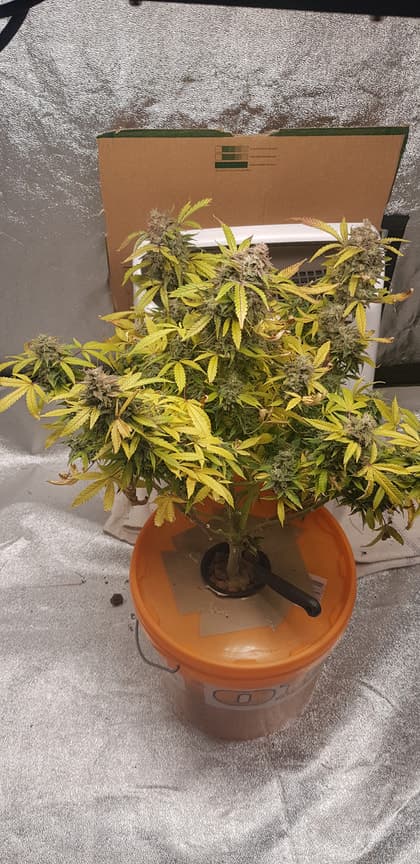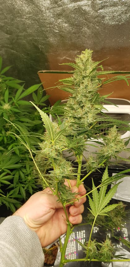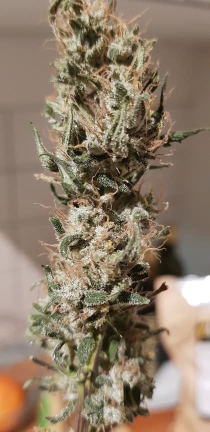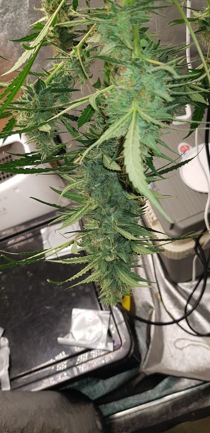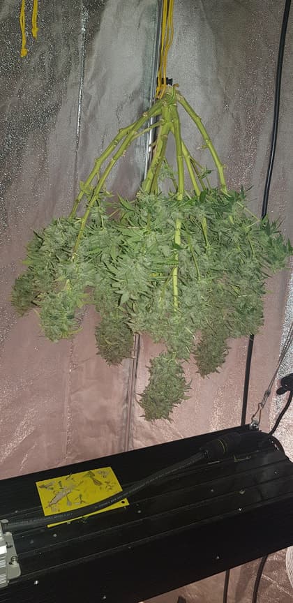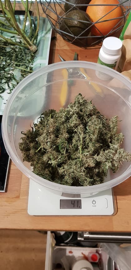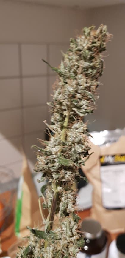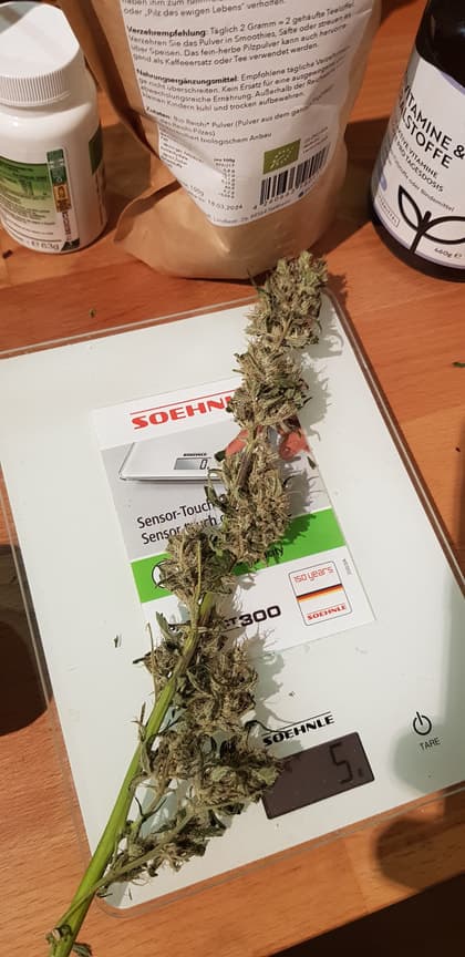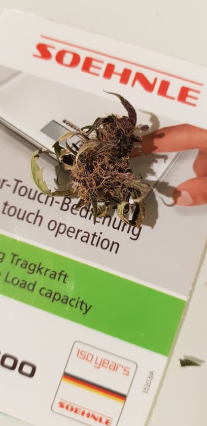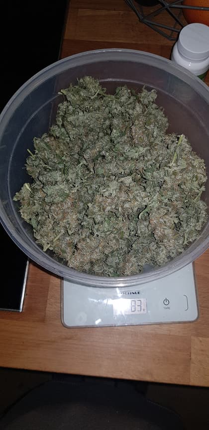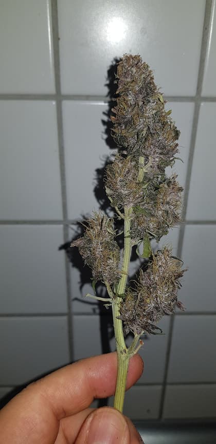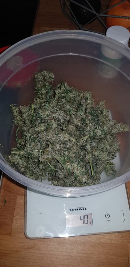 Da wir hier die letzten Tage um die 30 Grad hatten sind die in der Growbox bei durchschnittlich 27 Grad und 60% RLF schnell ins 4 Tagern getrocknet, so dass ich angefangen habe zu trimmen. Runz ist fertig 41. Gramm Trokengewicht. 3 Gramm von dem Krüppeling in dem Coco im Eimer called Wedding Cake riecht sehr süssfruchtig. Ich habeauch einen Ast Lemon Skunk getrimmt. Riecht der Hammer lecker Zitronig aber auch fruchtig. Blue Cheeze habe ich geraucht aber es war innen doch etwas feucht. Trotzdem kein Kratzen im Hals. Eğer ein samtiger Belag. Geschmacklich und vom Geruch kann ich euch morgen berichten. BNin tzu stoond und das Zeug war zu feucht, so dass man zum jetzigen Zeitpunkt was sagen kann. Hab ich auch grad vergessen um ehrlich zuısein. Trockner Mund, Euphorisch, habe angefangen zu tanzen :D Also effekttechnisch gebe ich von 10 Punkten 8. Geschmack werde ich später hier berichten. Die Asche könnt ihr sehen ist grau/weiss. Gespült wurde nix. Die Oschis sind absolut harzig und klebrig und riechen alle hammermäßig. Zkittels hat angefangen zu spinnen. Hat schnell Gewicht zugelegt, die andere Blue Cheese, die aber nicht so aussieht, wie das andere Blue Cheese, sieht Sch,sse aus. Zu kleiner Bud, schlechte Genetik, sehr wenig Trichome. Müsste auch die kommende Woche fertig sein denke ich. Warum ist die bloß nicht blau? Vielleicht war das doch ein Weddig Cake? Werden wir sehen.