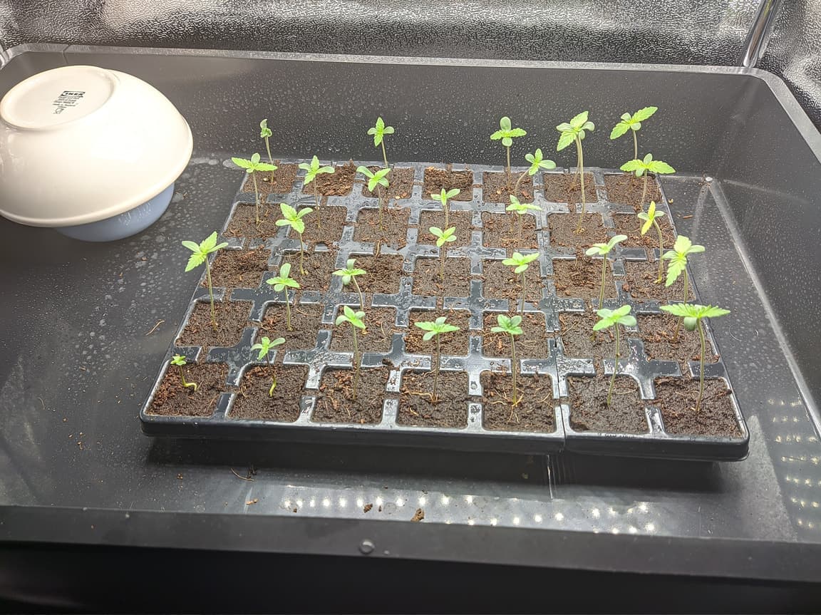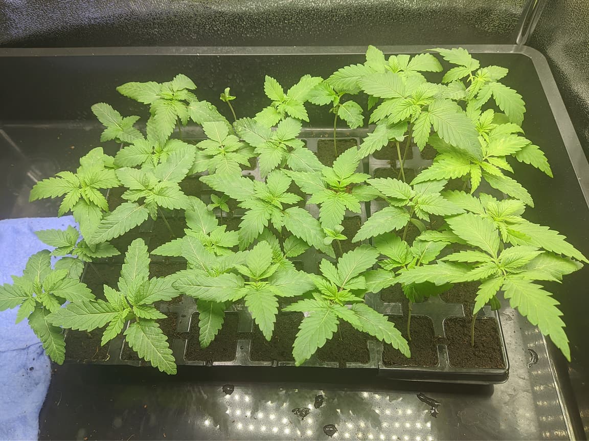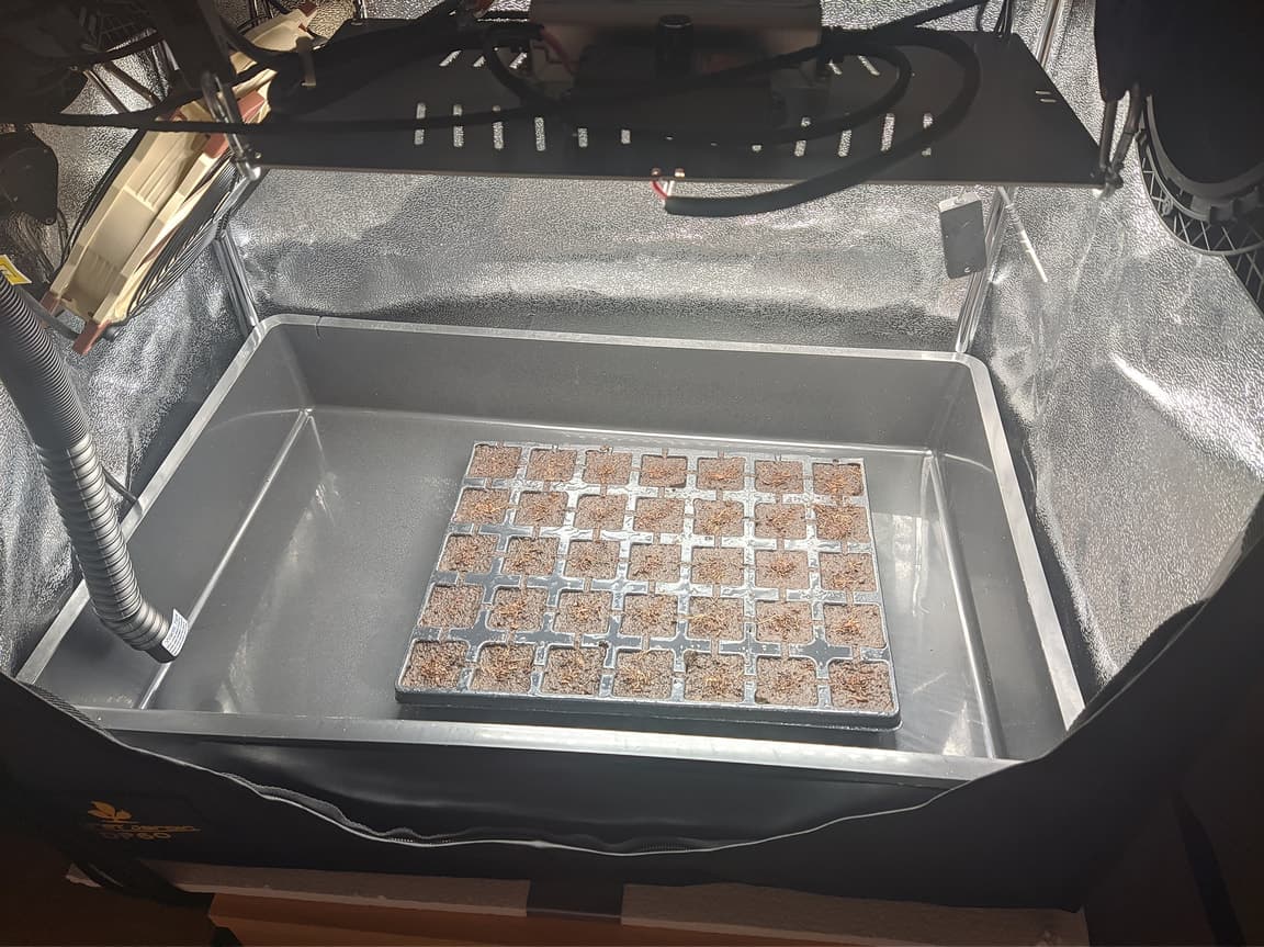 Hab die Plugs in RO + T.A Silicate, Yukka & Fulvital Plus (PH 6,5, EC 0,22) vollsaugen lassen und die Öffnung mit dem EazyPlug Mix bedeckt und nochmal besprüht. Bekommen jetzt 25 Grad & 70-80% RLF.