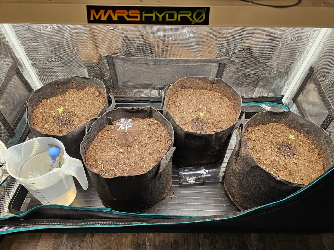 so seit gestern früh haben 3 Ladys ihre köpfe rausgestreckt und beim vierten tut sich garnix. Dann wird es einfach mal wieder nen run mit 3 pflanzen. Haben die auch bissl mehr platz :D