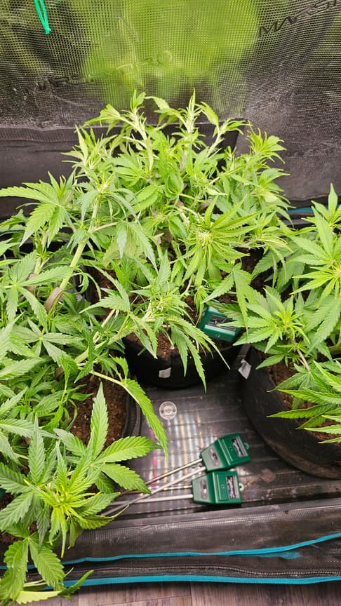 Habe nen haufen Blätter entfernt die die anderen triebe im Schatten haben stehen lassen. Die untersten triebe hab ich auch entfernt und lasse jetzt einfach nur noch wachsen.