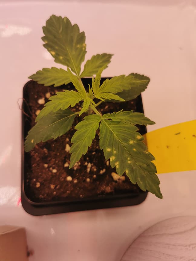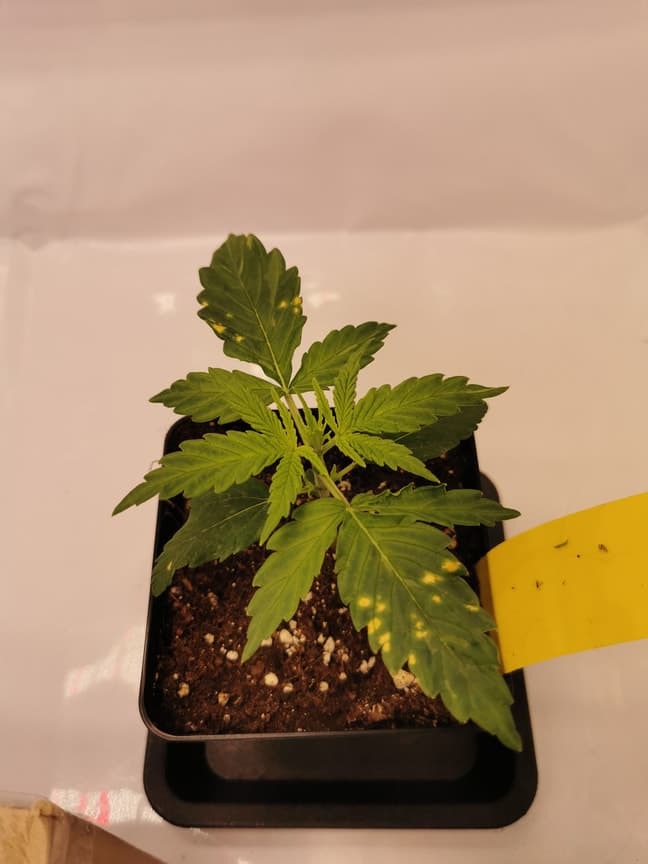 Ich brauche mal wieder euren rat gestern war noch alles okay und heute habe ich dann gelbe Punkte auf den Blättern von ein meiner 4 Pflanze endetckt was konnte das sein? Füge ein foto von gestern und heute hinzu.
