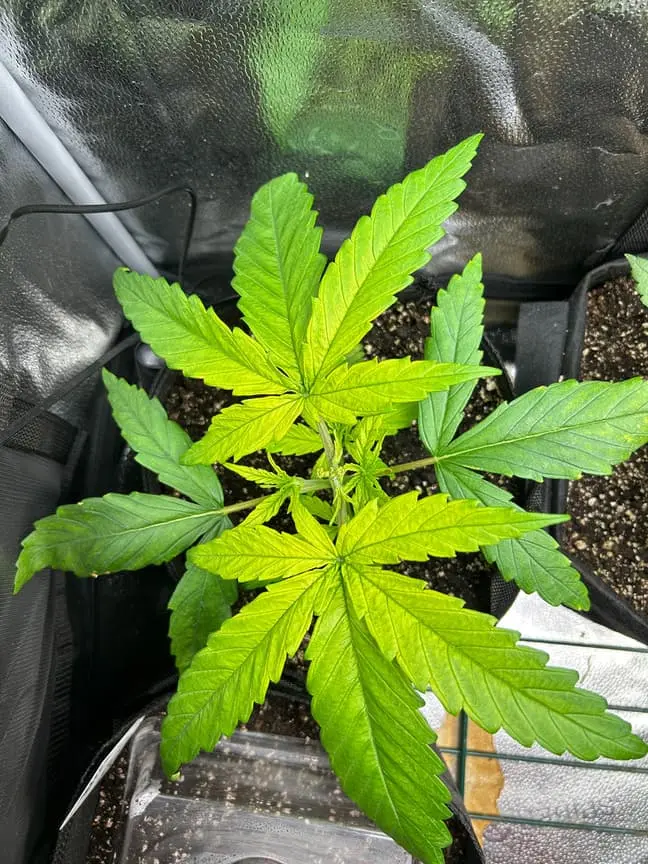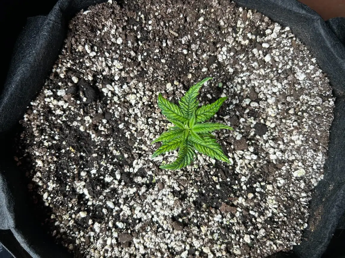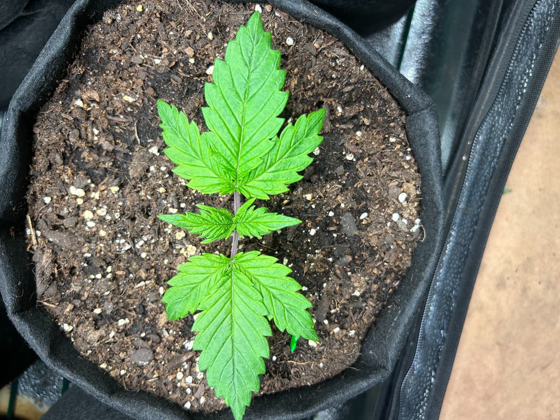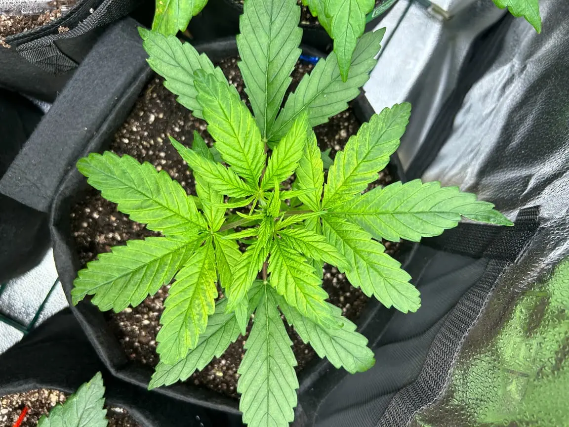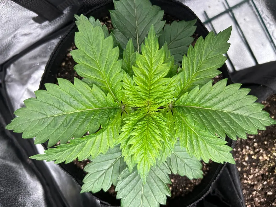 4x 15 Liter Smartpots von SpiderFarmer, 5x 10 Liter Smartpots aus dem Netz. Dünger von BioTabs, Alphaboost und BoomBoomSpray. Beim umtopfen dann der Gau schlechthin… zu wenig Lightmix… hab versucht, das Ganze durch ne Eigenkreation Erdmix zu ersetzen. Rate ich ab jetzt keinem mehr, außer derjenige weiß genau(!) was man tun muss und warum. Ich hatte erst keine Heizmatte drin, daraus resultiert einiges an Problemen. 1x Unbekannt ist eingegangen, die Critical hatte erhebliche Wuchsprobleme und die SweetCherry… naja. Die ist ein Fall für sich. Da ich Stecklinge schneiden möchte und einige der Damen (hoffentlich sind es alles ladies) extrem hinterher hinken, habe ich beschlossen, die wachstumsphase deutlich zu verlängern. Also am 22.10. noch ne CookiesGelato Automatik im Propagator platziert. Am 25.10. hat die dann einen Platz im Zelt bekommen, allerdings noch mit Haube gegen Zugluft. Die beiden Samen von SensiSeeds haben erhebliche Schwierigkeiten, liegt das an dem Strain oder an der Seedherstellung? Naja, die Critical erholt sich nach dem Skalpelleinsatz wieder, die SweetCherry habe ich ausgetopft (absolute Notlösung und nicht zu empfehlen), sehr wenige Wurzeln waren an der Pflanze. der Wuchs war allerdings so beschissen dass ich eine neue SweetCherry gestartet habe. Allerdings dieses Mal im Wohnzimmer unter ner 10w AquariumLED. Damit die Wurzeln keinen Umtopfstress bekommen, wandern seit dem alle Mädels in cocostöpfechen (6cm Durchmesser) gefüllt mit Anzuchterde. Sobald die „Einfinger-Blätter“ größer als die Keimblätter sind, wird umgezogen. Vom Propagatorminitopf in das erste eigene Zuhause (6cm Cocotopf). So war das dann auch bei der Automatik und der 2. SweetCherry. Jetzt rennt alles. Allerdings sind die Damen scheinbar nicht richtig versorgt. Blattzeichnungen, krüppelwuchs und so weiter könnten auch pH-Wert bedingt sein. Hier ist das Wasser zwischen 7,2 und 7,9 also nicht wirklich tragbar. Um den pH-Wert zu senken ist das Alphaboost völlig ausreichend, denke trotzdem dass etwas schief läuft. Momentan und noch 9(!) Wochen lang läuft die veggi-Phase mit 18/6 , 60-75 cm Abstand auf 60%LED-leistung. Die erste unbekannte, mit dem sehr hellen und kräftigen Wuchs, wurde per Schere gefimmt. Alle anderen wurden zumindest von unten schon beschnitten, kaputte krüppelige sonnensegel und die winztriebe ab. Temperatur schwankt zwischen 18 (Licht aus) und 24 Grad C. Relative Luftfeuchtigkeit zwischen 55 und 75%. Sobald die Lampen ausgehen werden die Blätter mit boomboomspray behandelt. Gegossen wird Wasser das mit Alphaboost auf 6,2-6,4 pH gebracht wird. Ca 1,5 ml/1 Liter. Gießen per Hand, abwechselnd rechts/links von der Pflanze. So kann eine Seite atmen und eine Seite saufen. Nur die Auto bekommt noch etwas wenig Wasser (ca 20 ml per Spritze)und das deswegen direkt in den cocotopf. In zwei oder drei Tagen (sobald die ersten Blätter ne gute Fläche entwickelt haben) kommt die Gewächshaushaube runter und es wird nur noch vom Topfrand bis zum cocotopf gegossen, damit der durchwurzelt wird. Was haltet ihr von meinem Setup, was würdet ihr ändern? Was könnte nötig sein? Was passiert eigentlich mit der Automatik wenn ich in 6-8 Wochen auf 12/12 stellen würde?