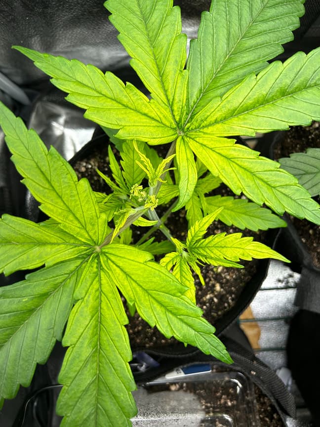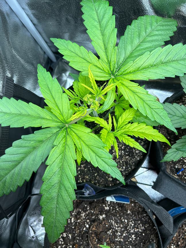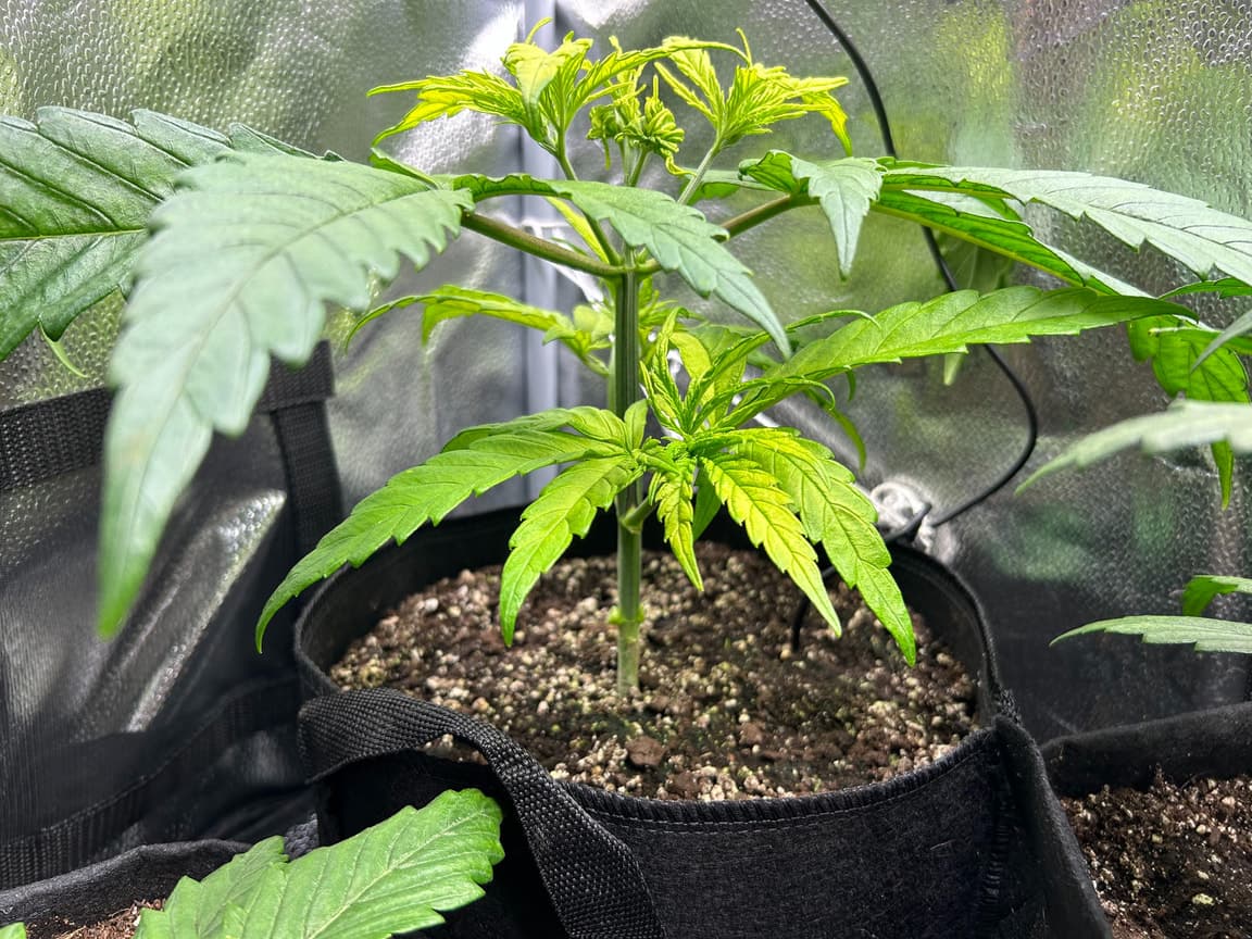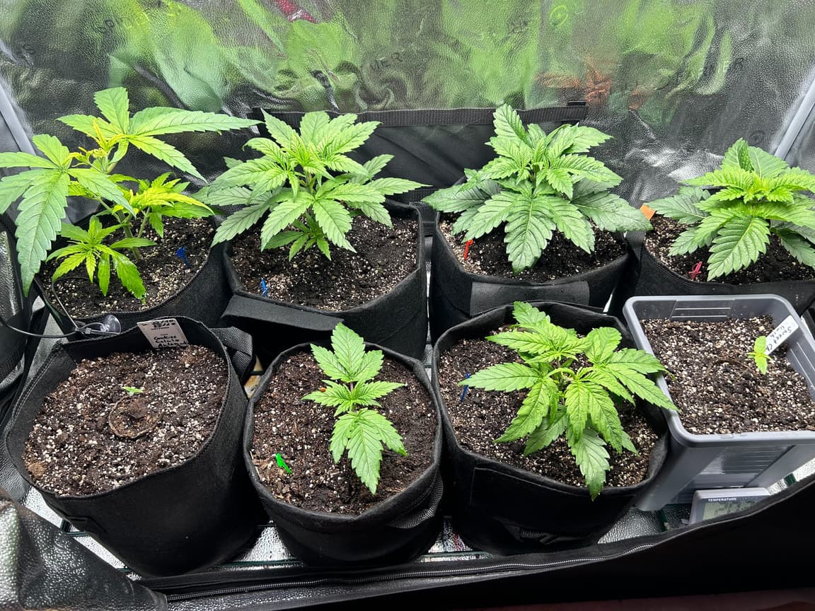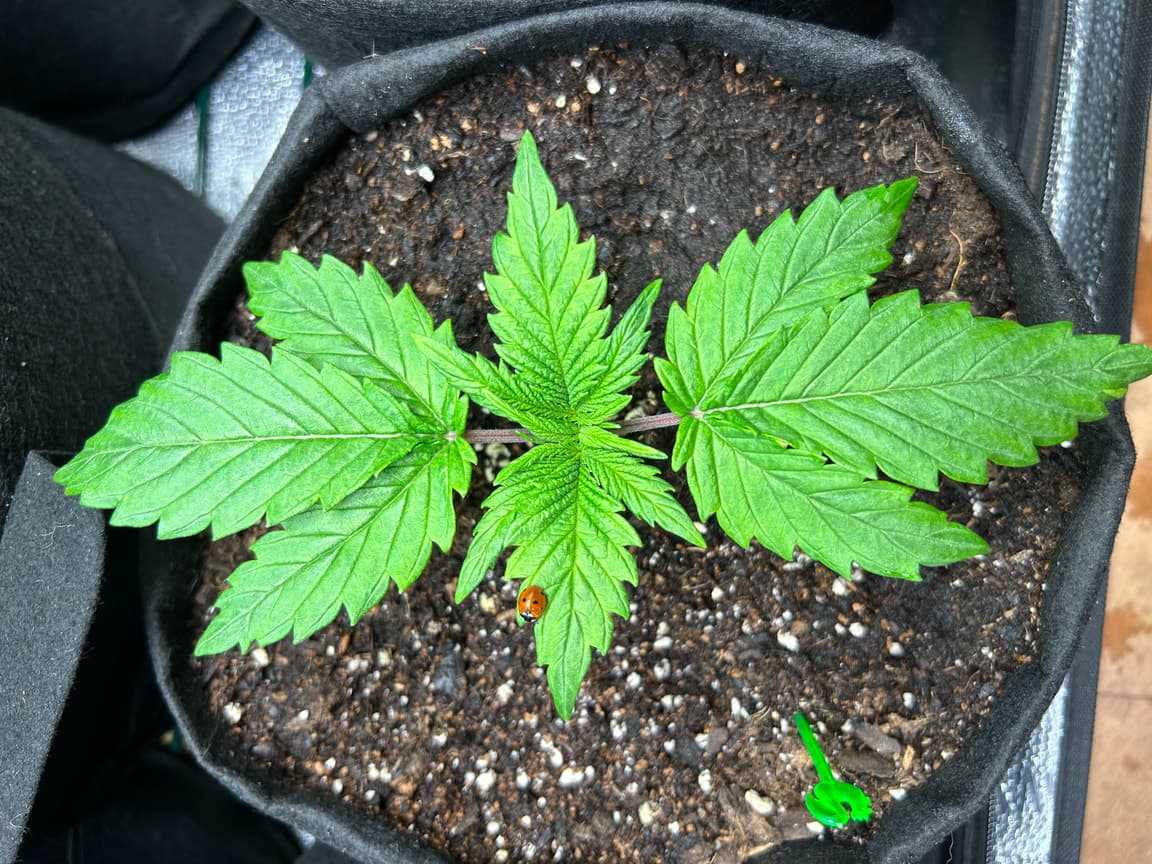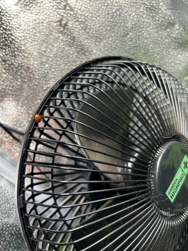 Die Damen wachsen und gedeihen. Kaum Muster auf den Blättern, nur hier oder da mal nen Punktschaden. Automatik macht sich bereit, ihr Dach zu verlieren, wird ja schon seit Einzug Stück für Stück weiter aufgestellt. Mal sehen, wie lange sie braucht um alle anderen zu überholen. Ich hab ne Fruchtfliege im Zelt fliegen sehen… wird das ein Problem, oder kümmert sich da Freund Marienkäfer drum?