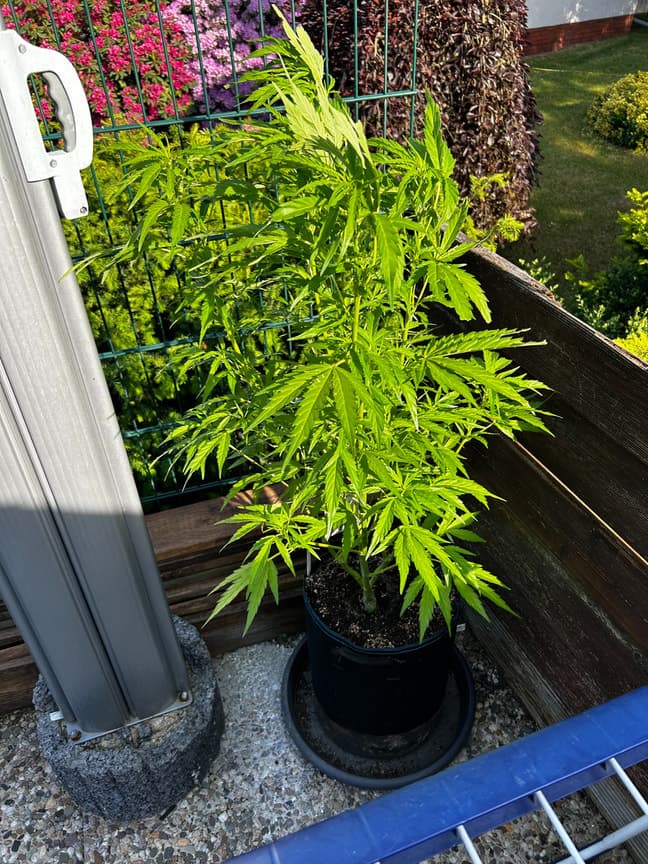 Nee, jeden Tag warte ich darauf, dass die beiden mistrunCriticals fertig werden und aus dem Zelt kommen. Dann kommt das Zelt aus der Garage und hoch ins Büro. Sobald das soweit ist, wandert die muddi ins Zelt. Stretch wird dann hoffentlich ausbleiben, die steht schon länger auf der Kippe zur Blüte und reveggt gerade wieder. Werde wohl nochmal Kappen müssen, obwohl ich den AKF neben die Lampe hängen kann: 1,80 m minus 35 cm Topf, minus 10 cm Lampe, minus 15 cm Mindestabstand… bleibt 1,20 m für die Pflanze… 😅