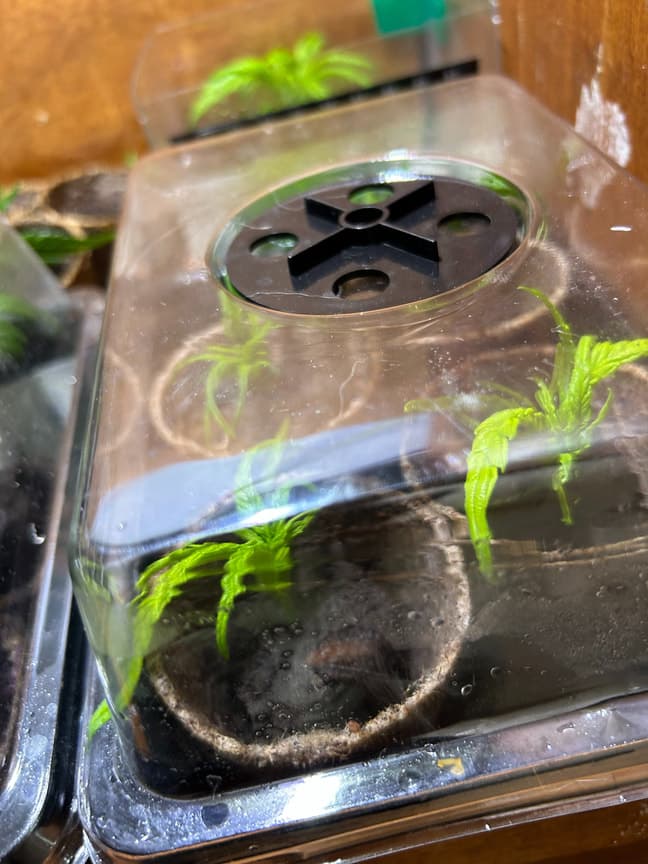 Ausnahmslos alle Stecklinge sehen vital aus und stehen aufrecht. Denke es werden wirklich viele überleben. Werden schön alle 2-4 Stunden eingesprüht und stehen unter einer 10W Aquarienled mit 8000K die im 18/6-Rhythmus schaltet…
