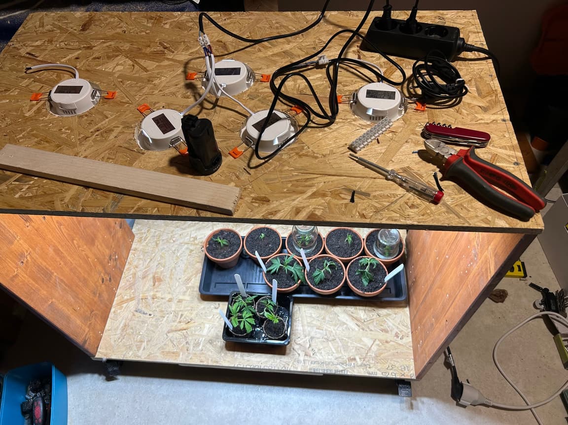 So. Hatte die Faxen dicke. Jetzt bau ich mir ne Aufzuchtstation. 5x 7W led spots mit je 5 wählbaren Farben zwischen 4500k und 6500k Türen folgen noch. Abluft ebenfalls in Form von 2x 120mm PC-Lüftern. Am Ende sollte das Ganze nur noch einen Stecker haben und die LED‘s einzeln schaltbar sein. Habt ihr ne Empfehlung für die Lichtfarben? Alle auf 6500k oder gemischte Farben? Momentan sind es nur die Stecklinge, allerdings sollten die Automatik und die SweetCherryKush auch noch hier unter kommen.