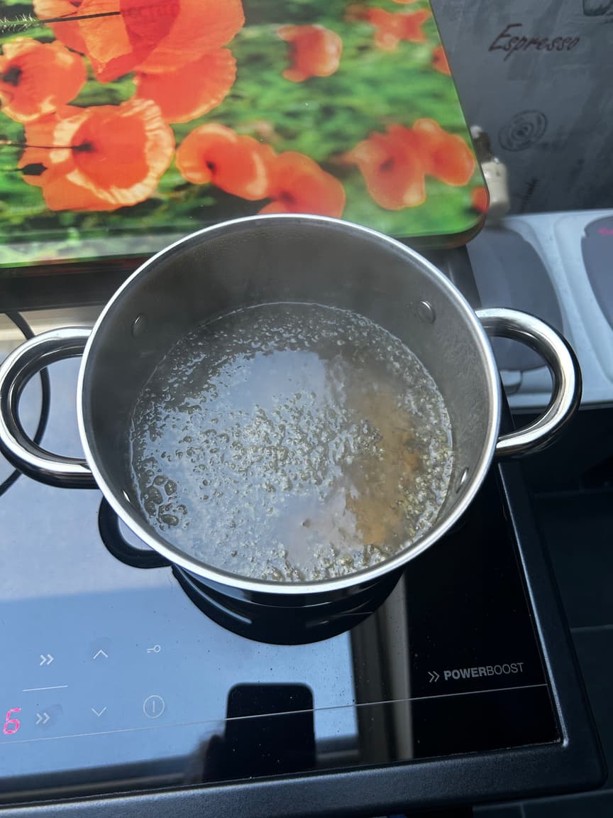 So, Suppe kocht. Nächstes Mal nehme ich einen gefrierbeutel und koche mein Gras da drin… das Wasser löst zwar kein THC, aber die Hitze und die Bewegungen reißen mit Sicherheit die trichome ab.