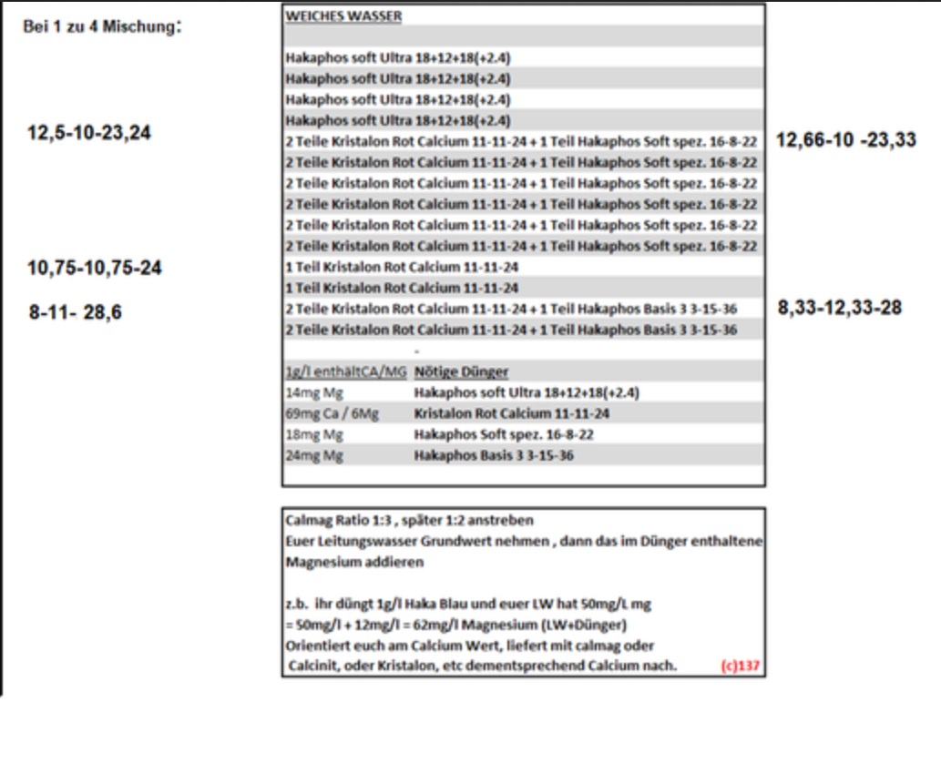 Okay wieder eine Nacht drüber geschlafen und viel recherchiert. Habe noch nie eine Stammlösung angesetzt, mir fehlt das Basiswissen und dann gleich ein eigenes Düngeschema zu entwickeln ist mir dann doch etwas zu verrückt. Ich denke, dass ich auf das Schema für weiches Wasser aus dem Thread "KLEINES HAKAPHOS DÜNGER HOWTO - ERDE / HYDRO / HARTES WASSER" zurückgreifen werde.