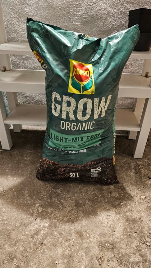 Gestern beim Umtopfen ist mir aufgefallen das ich nicht mehr genug Lightmix habe und hab dann einfach Wurmhummus und Seedling Soil von Plagron mit drunter gemixt.