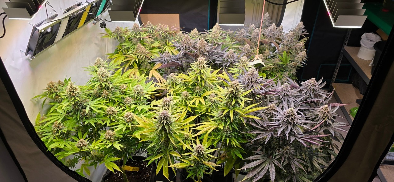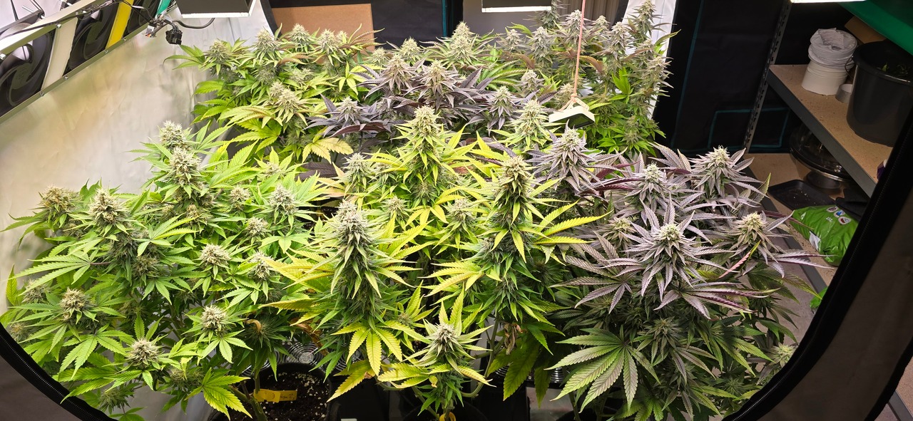 Ich habe jetzt, bei meinem 2. Run, auch nur eine Sorte, die Banana Glue. Hier sind es ja auch wieder Stecklinge gewesen, allerdings sind diese von verschiedenen Muttis, da sie aus einer Großproduktion kommen. Verhalten sich dennoch recht ähnlich, bis auf eine, die etwas mehr in die Höhe schießt. Bei den Criticals, meinem 1. Grow, stammten die Stecklinge von nur einer Mutti.