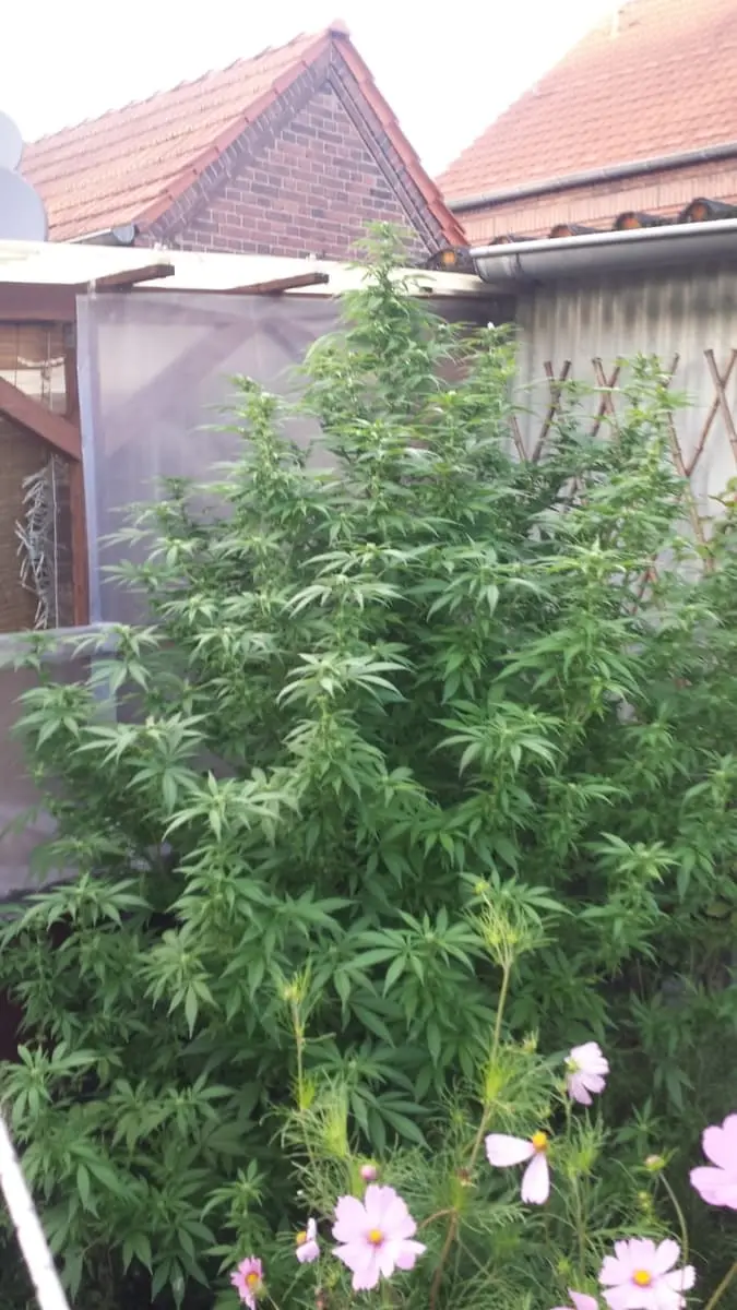Und dann mal 2 Bilder von nem Outdoor grow den meine Schwester ca 2017 gemacht hat. Dat teil war über 3 Meter hoch und hat einfach die nächsten zwei Nachbarschaften zugestunken. Das da die Bullen nicht aufgetauscht sind war ein Wunder :D