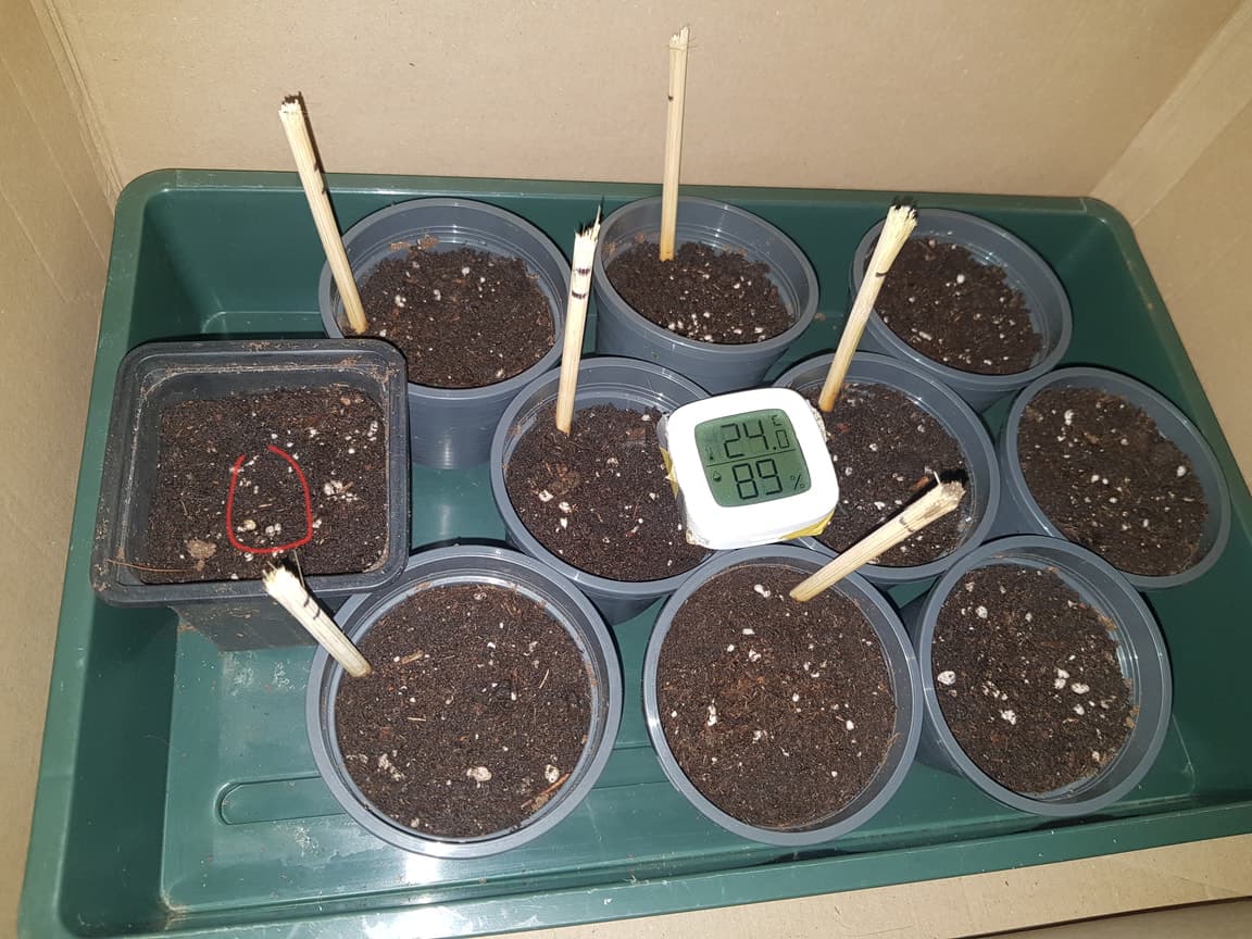 Es geht weiter! Letzte Nacht wurden die nĂ€chsten Seeds von RQS gepflanzt. Diesmal werden es 3x Fat Banana (auf der Suche nach dem Rotten Pheno), 3x Gorilla Glue Gelato und 3x Wedding Gelato, wobei ich vom Wedding 4 StĂŒck angesetzt habe. Ein Seed war leicht eingebeult.... und genau der streckt gerade schon den Kopf aus dem Sand! 😁