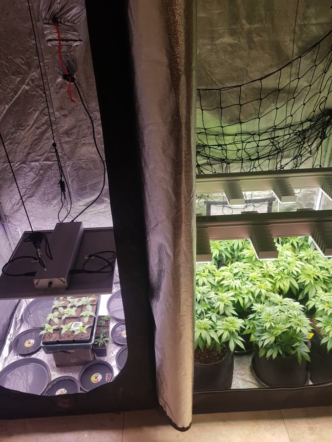 Danach in 8L Stoff in 100x100x200 unter 500w Sanlight Evo 4-100, dimmbar