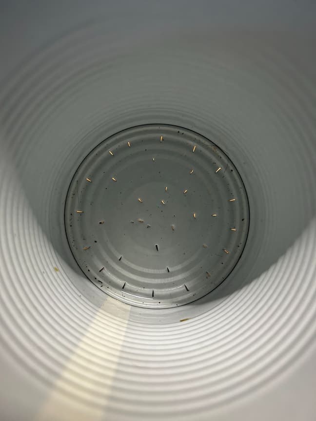 Es hat sich herausgestellt dass es wirklich wichtig ist, das Papier von den Dosen abzuziehen. Außerdem solltet ihr die Dose nie auf der untersten „Auffangdose“ montiert befüllen.