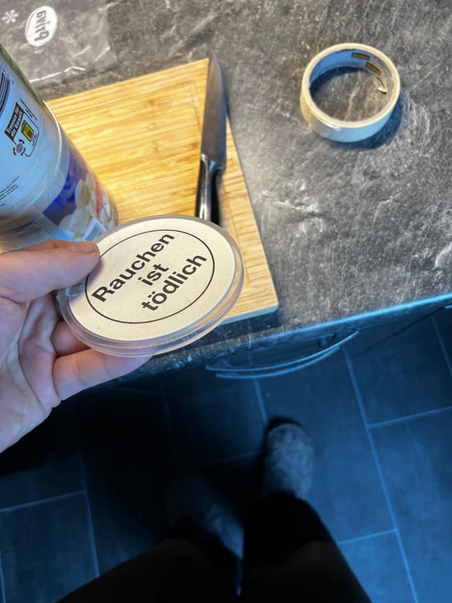 - einen Deckel von ner Tabakdose (gibt es auch im Supermarkt, Joghurtdeckel aus Silikon z.b. da aber auf die Größe achten)