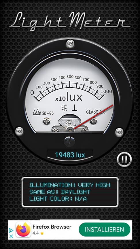 was können mir die 12,5 klux sagen? Abstand Lampe >< Handy 30cm