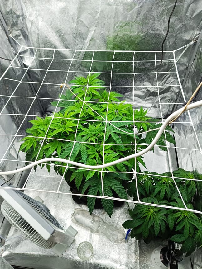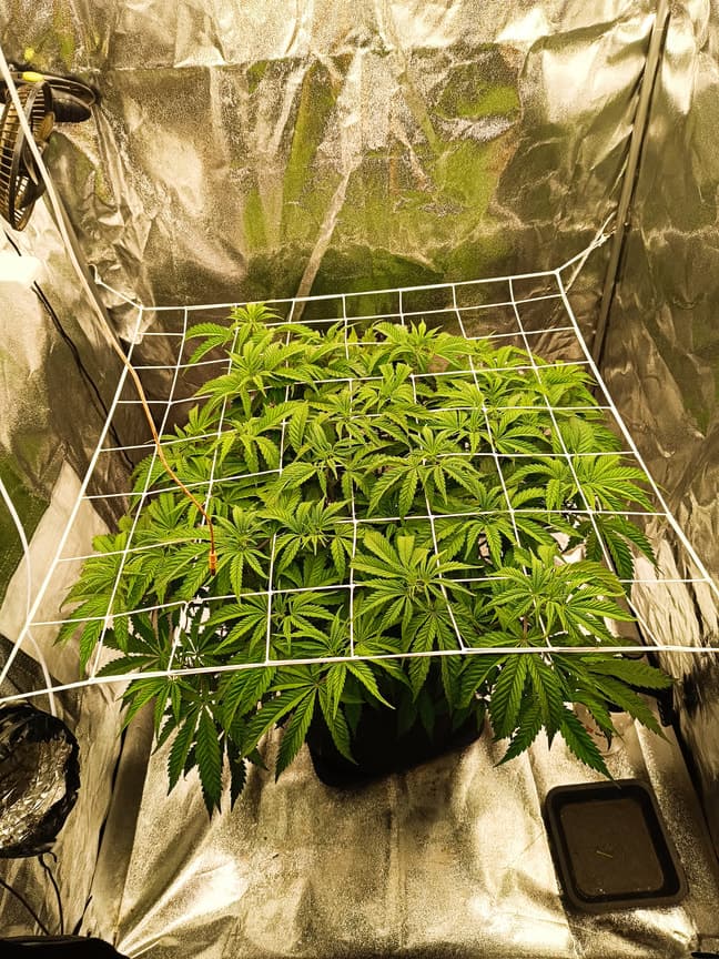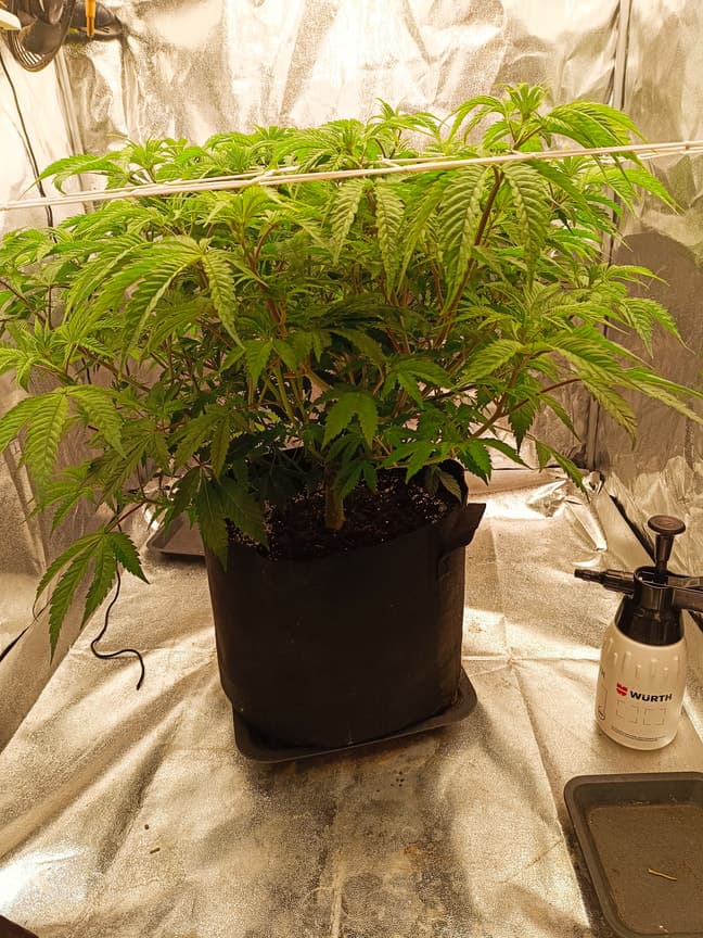 Hier mal nen paar Bilder von meiner lady.gegrowt wird in 30liter pötten auf 1qm.beleuchtet wird ab Montag mit Ner Spider Farmer se5000.mal schauen was die Lampe so bringt.jetzt gibt's noch vegi bis das Netz voll ist und dann kann die blüte kommen ![]()