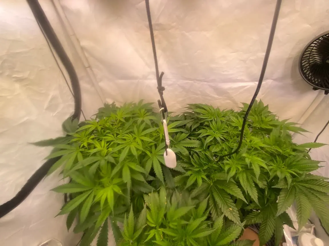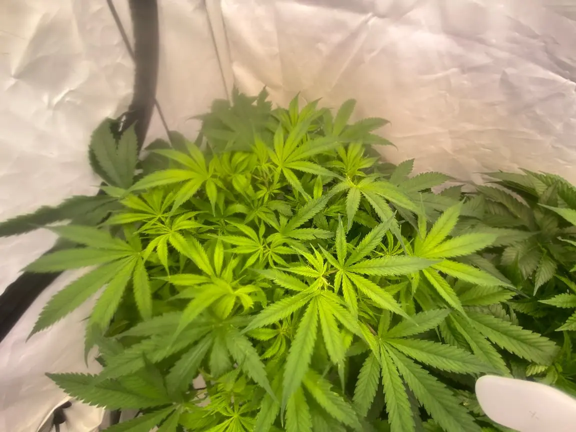 nochmal ein Update , Fotos vor 10 min. gemacht. Hoffe nur das sie noch gut wachsen jetzt die nächsten 2 -3 Wochen. Hab das Gefühl das die Chocolate nicht mehr großartig wachsen will und sehr gedrungen bleibt. Die wächst schon mit extrem kurzen Internoiden Abständen, auch wenn ich die Lampe höher stelle. Die Durban dagegen wächst mit idealen Internoiden Abständen, sodas aus der ein paar grämmchen runter gehen sollten, obwohl ich keine Ahnung hab wie das jetzt weiter geht mit düngen und wann das Licht auf mehr Power gestelt werden soll.? Ich habe immer noch 40% und 50cm Abstand