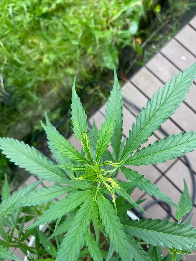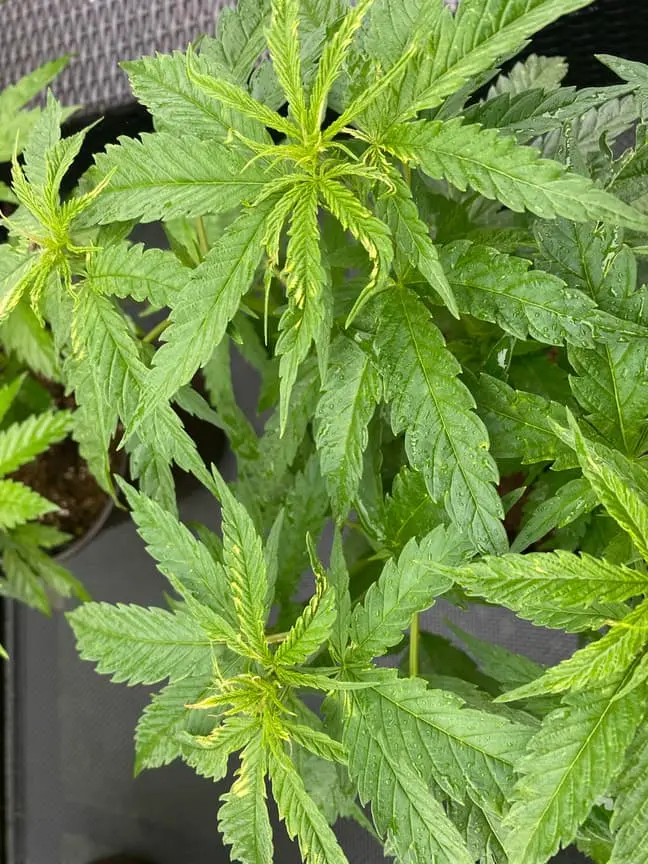 Das könnte magnesium mangel sein. Du kannst die Cal/Mag dosis erhöhen.