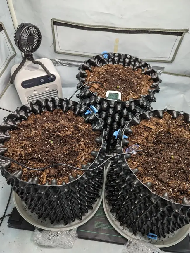 Gekeimt wird momentan direkt in der Erde, bereits in den 9L AirPot´s.