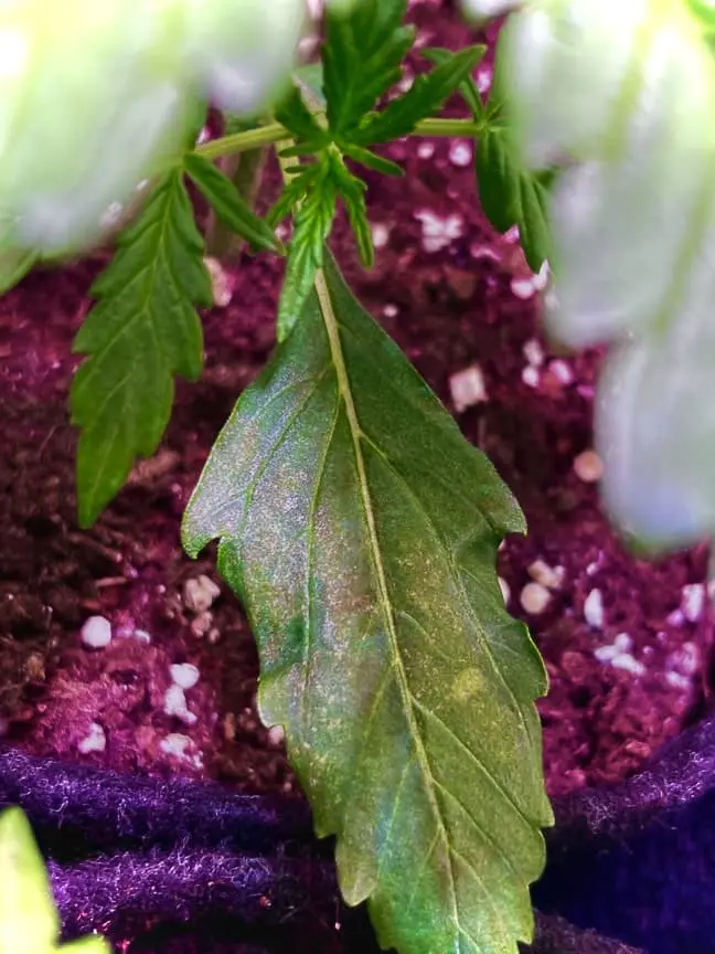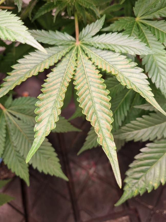 Seit gestern (Tag 14) hat meine Blue Cheese AUTO an den älteren unteren Blättern leichte bräunlich gelbe Flecken/Verfärbungen. Es ist erst ganz ganz leicht, erst bei genauerem Hinsehen zu erkennen. Hätte es fast übersehen.