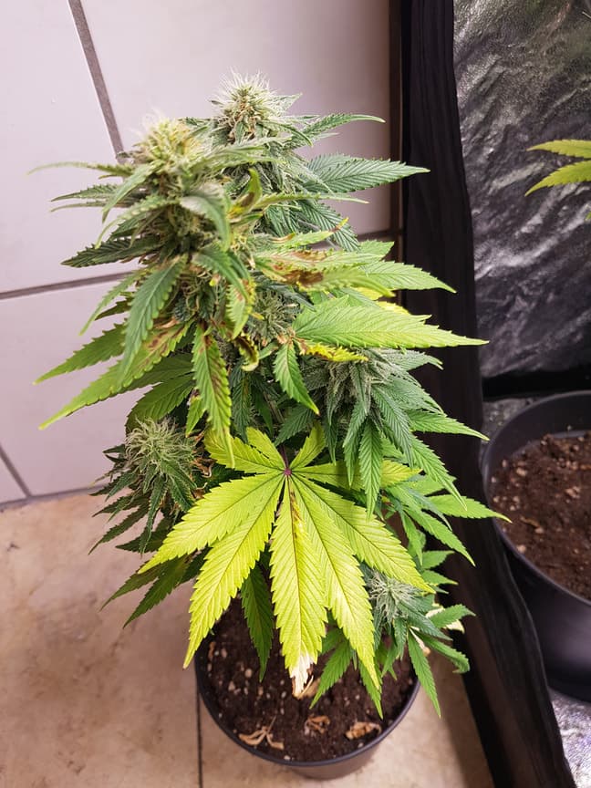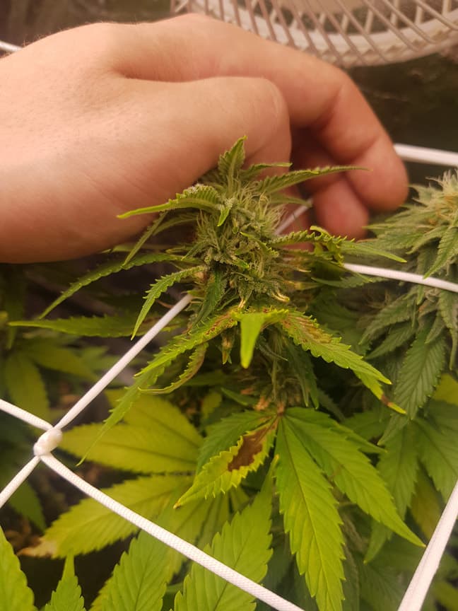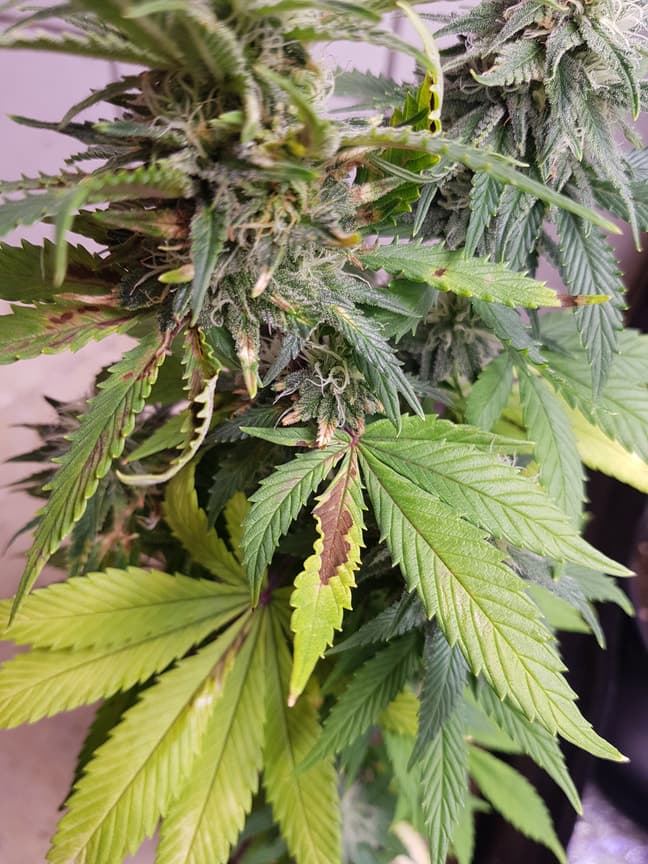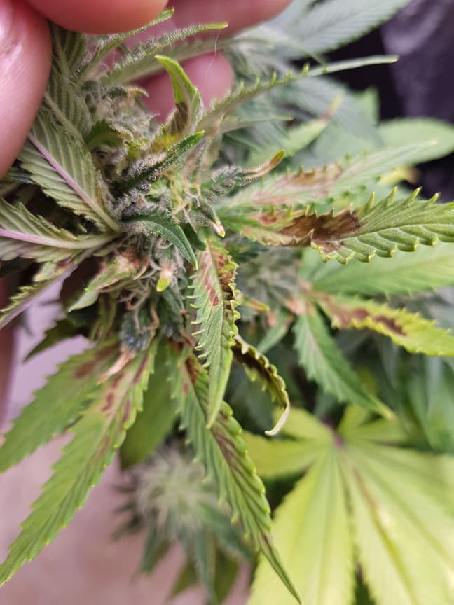Die Buds selber sind sozusagen noch unversehrt, aber selbst auf den kleinen Sugarleafs siehste braune Flecken...