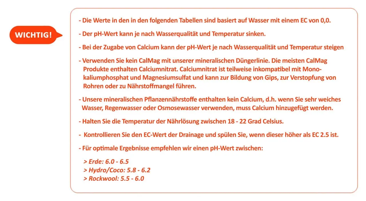 Danach darfste nicht gehen. Calnit ist nämlich kein Härtebildner und im Gegensatz zu Hydro, wo du den pH aktiv steuerst und über den Drain regulierst, biste bei Erde auf Carbonate angewiesen, sonst macht der Torf ganz schnell wieder einen Moor und du hast pH 4,quietsch im Medium🤗
