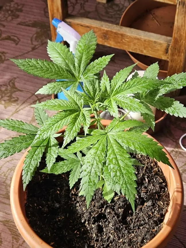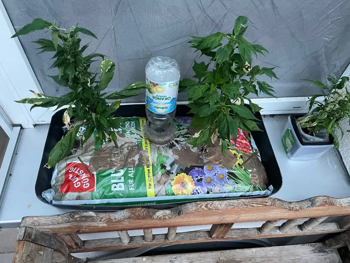Als Erde verwende ich eine vorgedüngte Composana Premiumerde. Beleuchtung 18/6. Wenn die Sonne scheint, steht sie im Freien auf dem Balkon, ansonsten Vollspektrum-Lampe.