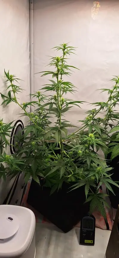 Die Purple Skunk ist seit ca einer Woche in der Blüte und hat relativ wenige Stängel und zwischen der Internodien ist viel Platz.