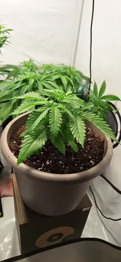 Ich müsste ja eigentlich die zweite Pflanze in die Blüte schicken und die Lichtdauer auf 12 Stunden senken. Die Auto hätte aber gerne weiterhin 18 Stunden. Dann wäre ja dann noch die kleine Pflanze. Das ich die nicht perfekt versorgen kann war mir eigentlich schon klar als ich diese gekeimt habe. Wollte dennoch 3 Pflanzen haben.