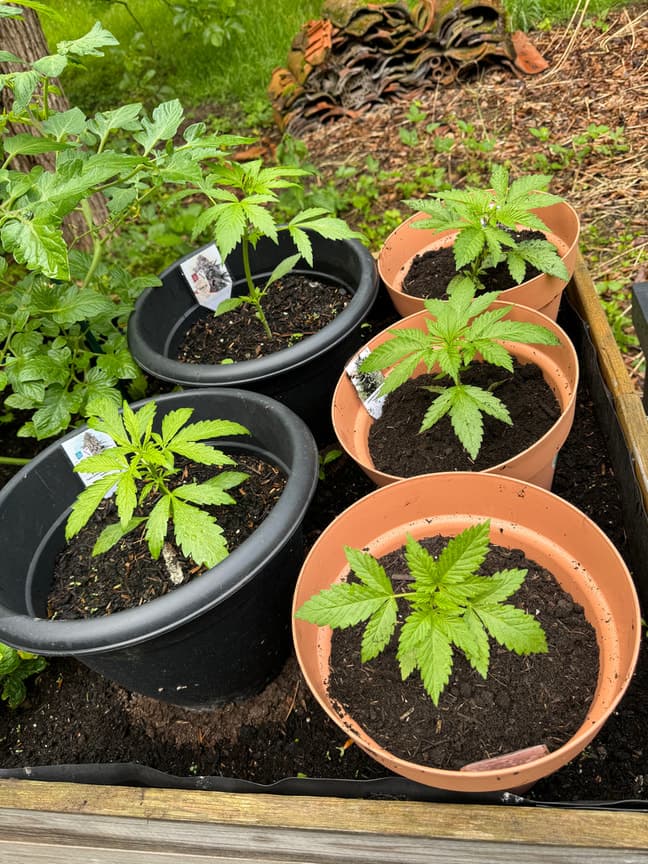 Die anderen vier sind in kleinen Töpfen gelandet und ab ins Hochbeet.