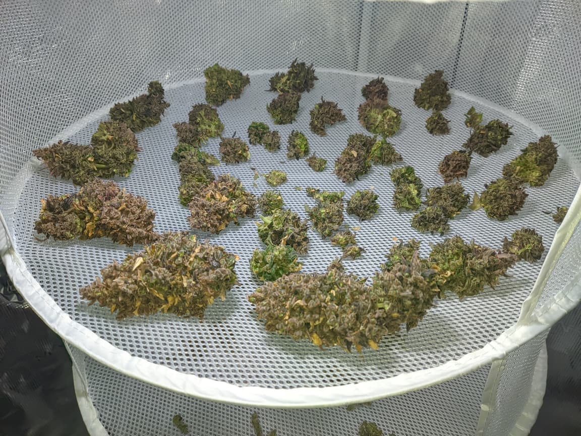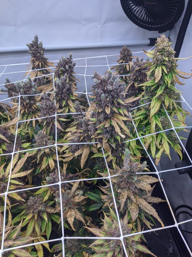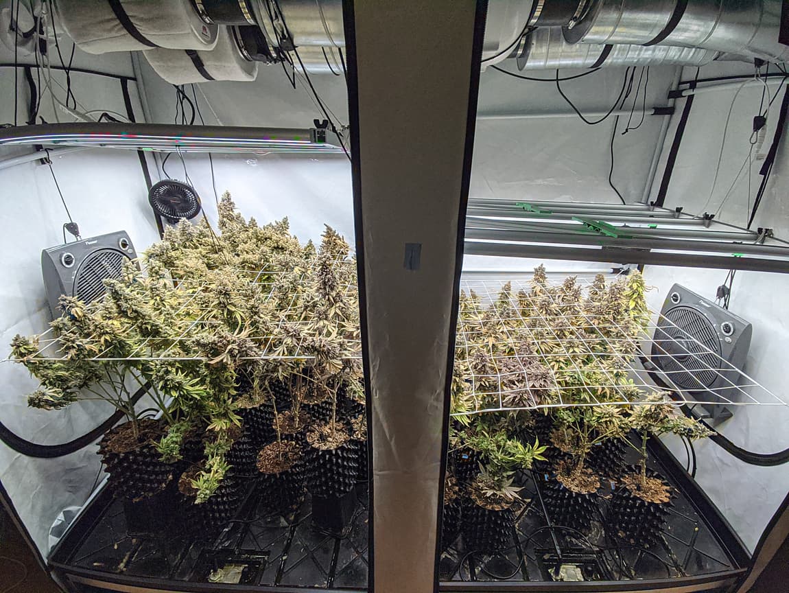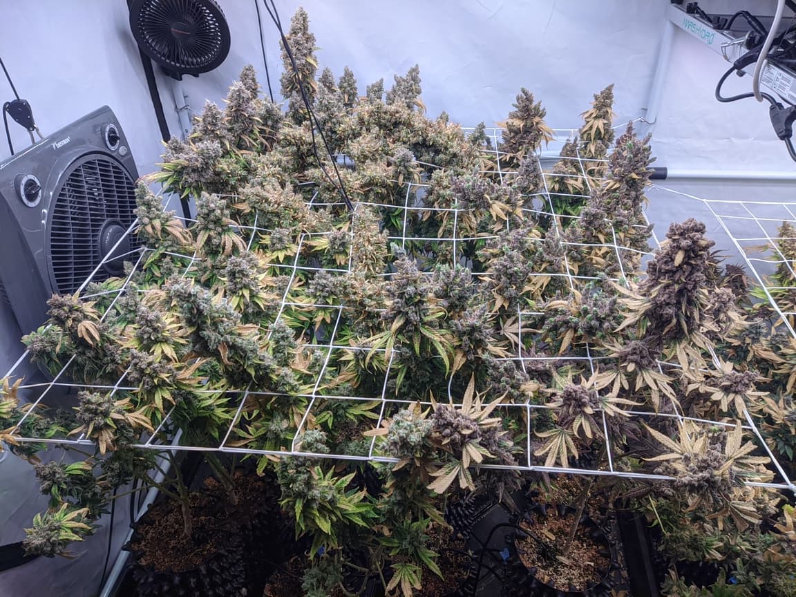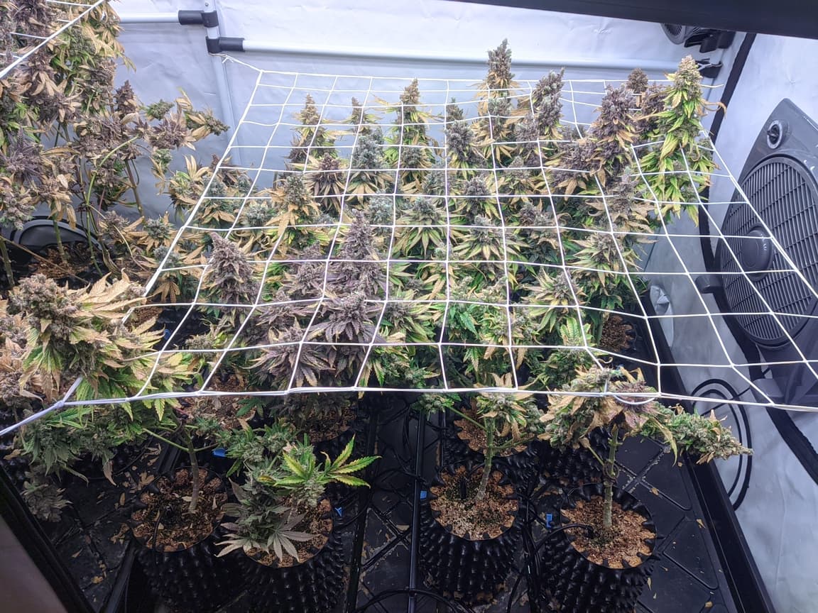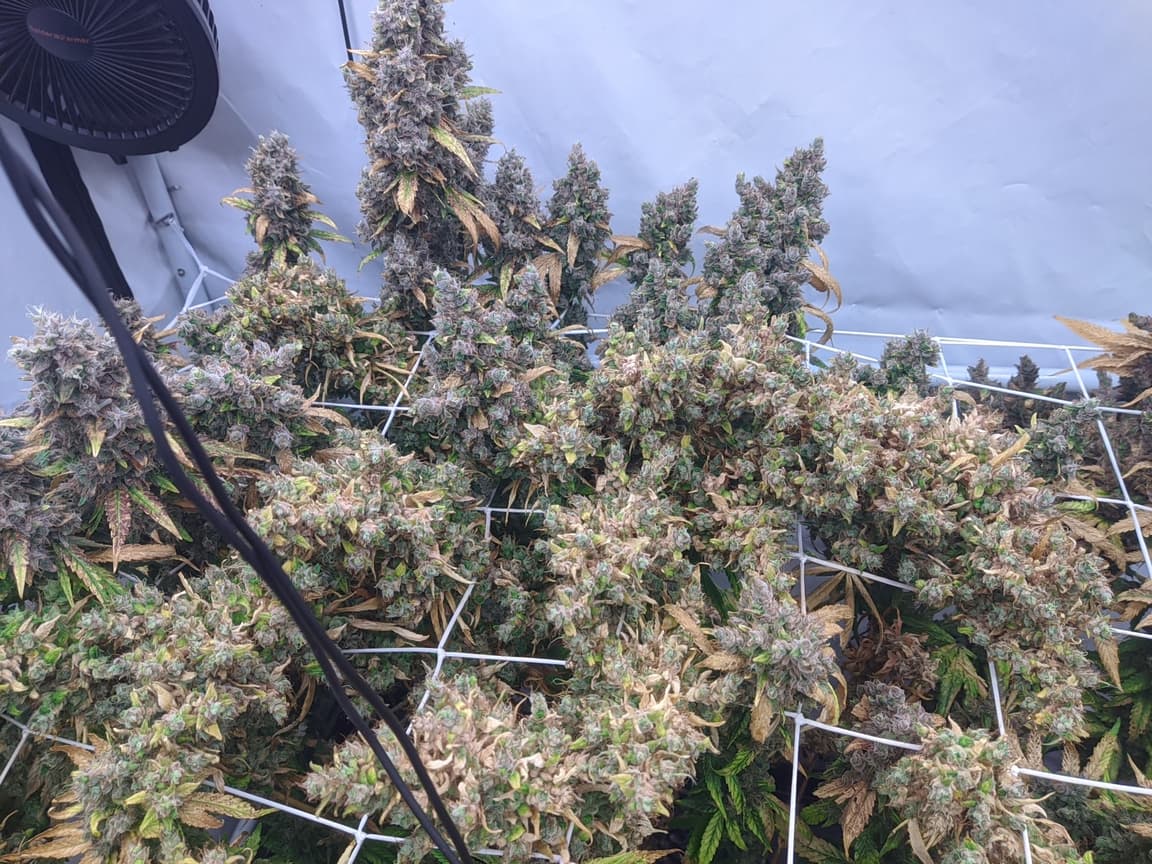 Drain EC ist mittlerweile von 1,5 runter auf unter 0,5, morgen früh gibts es das letzte mal Wasser und das Licht wird auf 24/0 gestellt (DLI 30). Somit gehen die Temperaturen etwas runter (aktuell 26 Grad und 46% rlf). Sonntag/Montag wird dann mit der Ernte gestartet.
