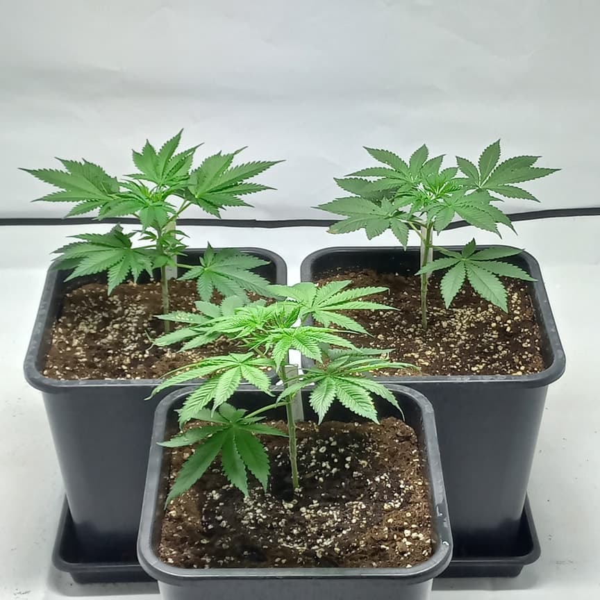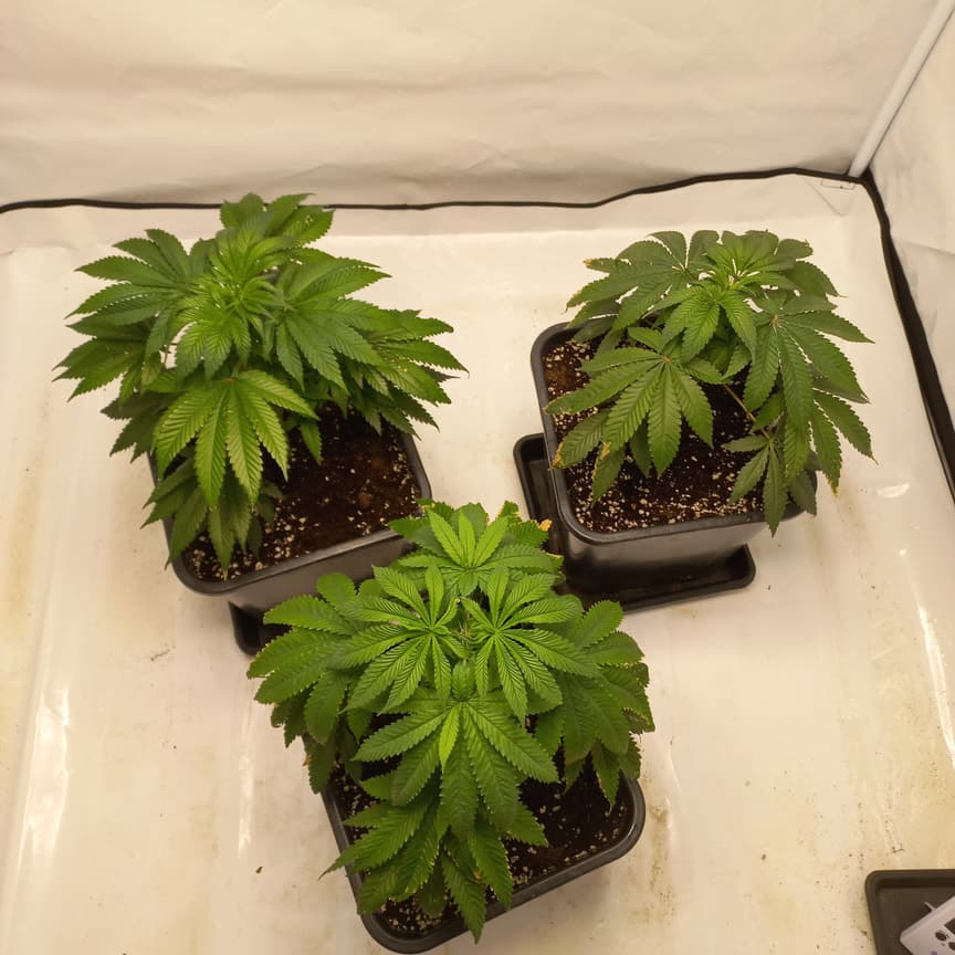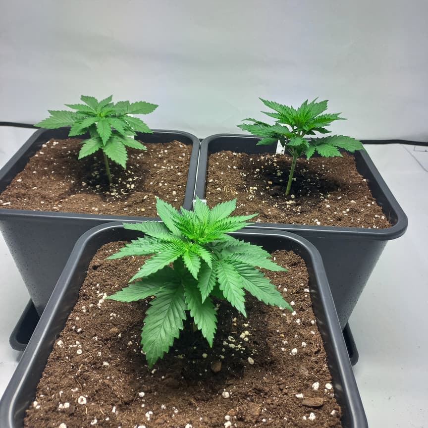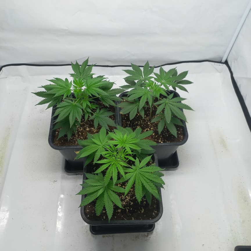 sie sind gestern 4 wochen alt geworden und dafür find ich sie nach wie vor recht klein mit 20cm :/ :/ sie sollten doppelt so hoch sein ohne topf - ich hab am anfang ein klein bisschen überdüngung gehabt das hemmt das wachstum natürlich auch und ich denke sie standen für einpaar stunden ab und an zu trocken daher die komischen blätter bei der Haze und Gelato - doch alle wurden gleich gut behandelt :saint: :saint: