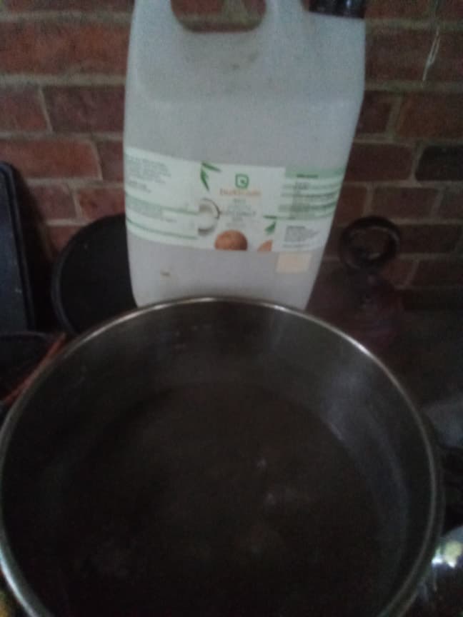Ein Kanister Cocosöl wird mit der entsprechenden Meng Hanf und etwas Wasser ca. 1,5 Stunden geköchelt.