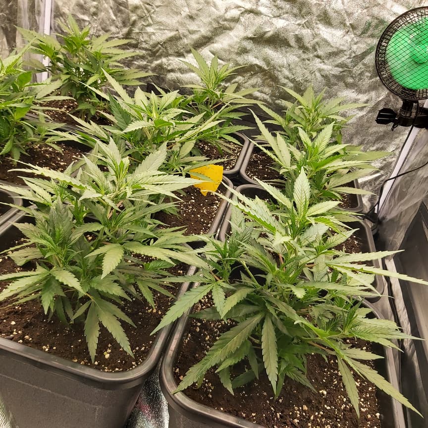 Leider ist mein Zelt mit den 18 Liter Töpfen schon jetzt sehr voll, und das obwohl ich die Töpfe noch dicht im Quadrat zusammenstehen habe. Habe etwa zu allen Seiten noch 20cm Platz, und werde dann die Tage diese auch noch voll ausnutzen müssen, da meine Criticals schon jetzt größtenteils über die Töpfe wachsen, ohne sie bisher getoppt zu haben.
