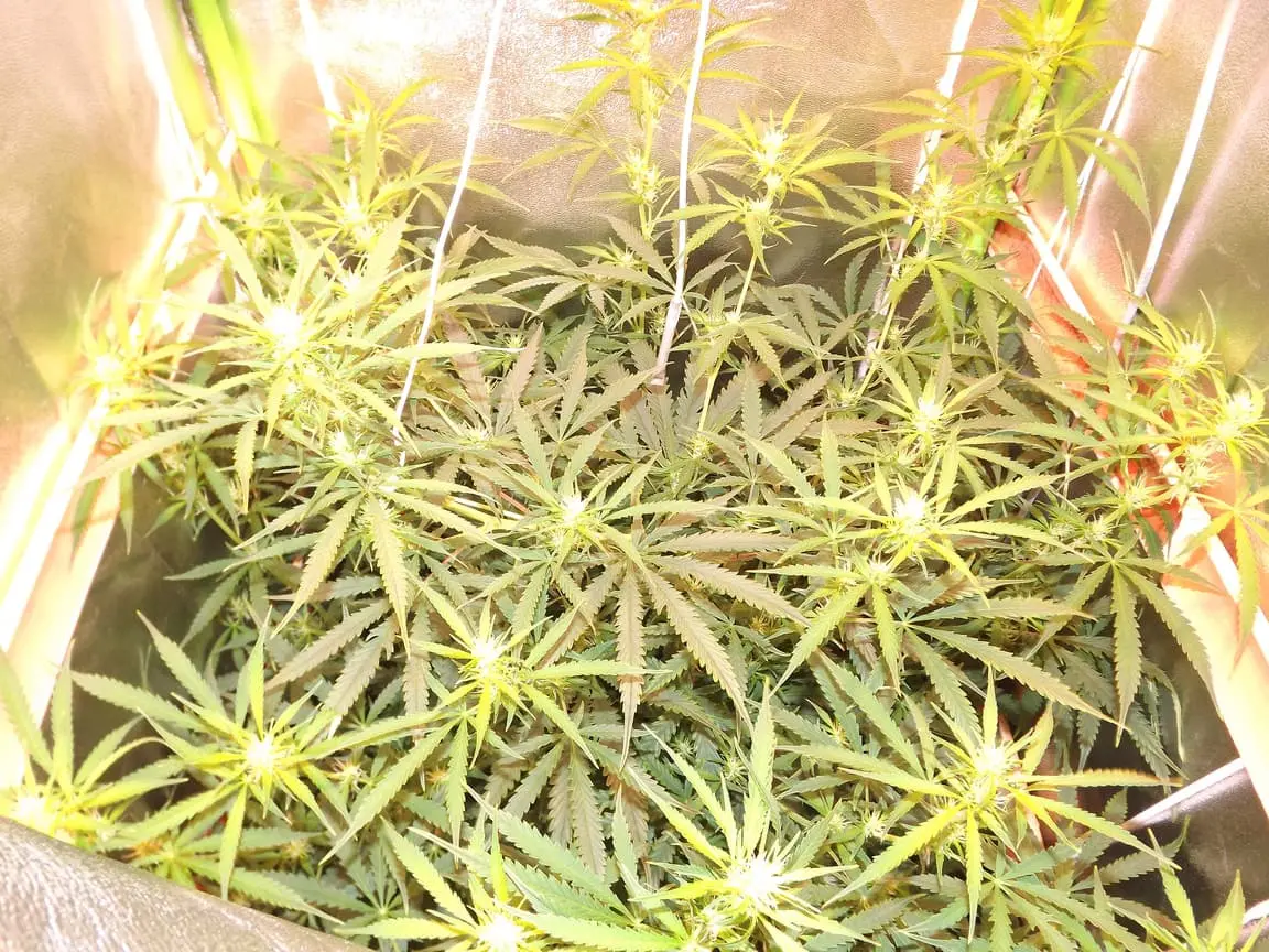 Das sieht aus, wie der Blüteversatz, ist also völlig normal. Wie lange ist dein Licht an? Bei ner Automatik kannste meistens auf 20 Stunden Beleuchtung gehen. 18 Stunden sicherlich. Das macht dann recht viel beim Ertrag aus…