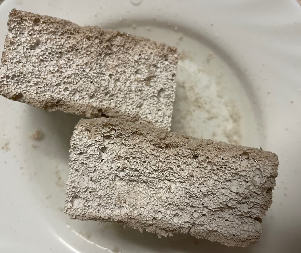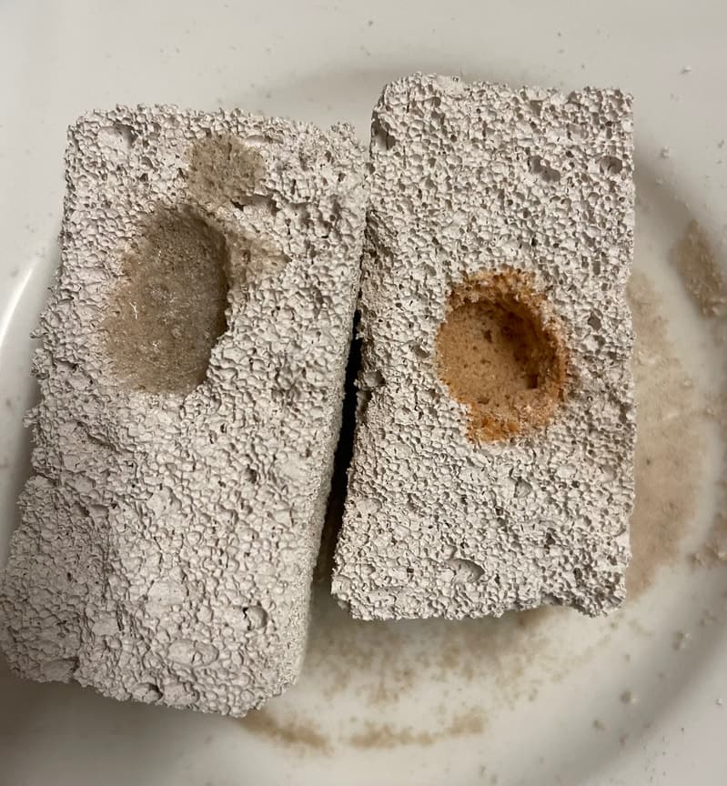 Ich hab heute Kalziumsilikatplatten ergattert und das sind Toastbrot große Verschnittstücke, die muss ich also erstmal in ein Growmedium verwamdeln. Was ich aber direkt schon mal sagen kann, ist das ich gefühlt Growrocks Blöcke in der Hand halte.