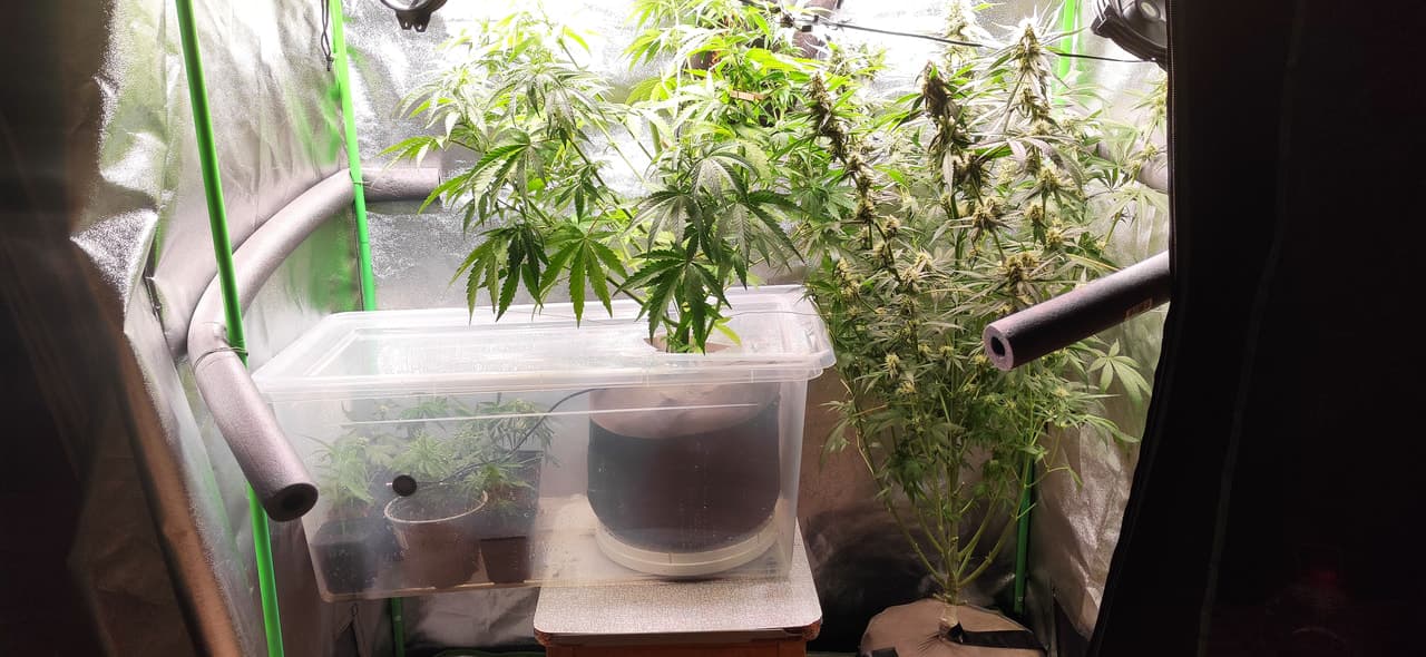 Aktuell habe ich einen großen Eimer (ca. 40L) mit Deckel. Da passt die led perfekt auf den Rand, auf die Seite schräg über die led und in den Eimer pustend, hängt ein 120er-Pc-Venti und auf dem eimerboden liegt eine Wärmematte. Fertig ist meine Stecklingsstation, die wirklich überall stehen kann.