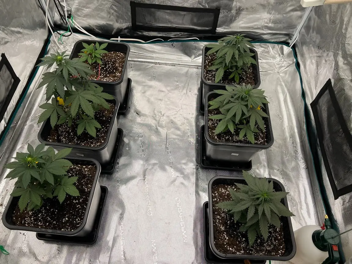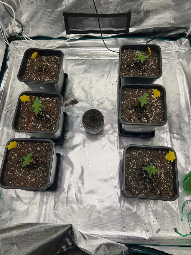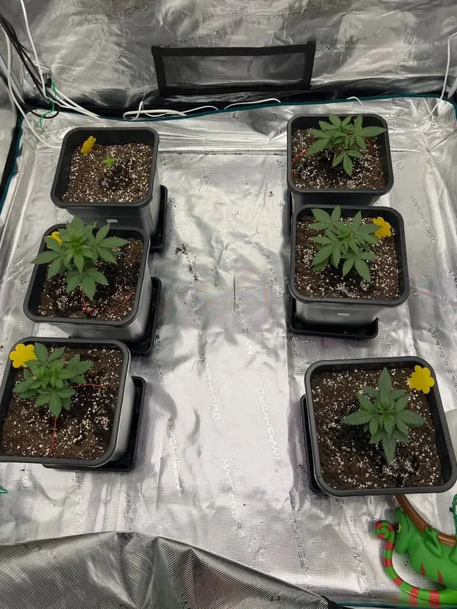 Kurz zum Update der Pflanzen: Leider ist eine Cherry Punch nicht gekeimt. Die schnellste Lösung war also meinen Kumpel nach einem Ersatzsamen zu fragen. Der hatte von der Mary Jane noch irgendwas mit Blueberry geschenkt bekommen. Es bleibt also weiter bei 6 Pflanzen.