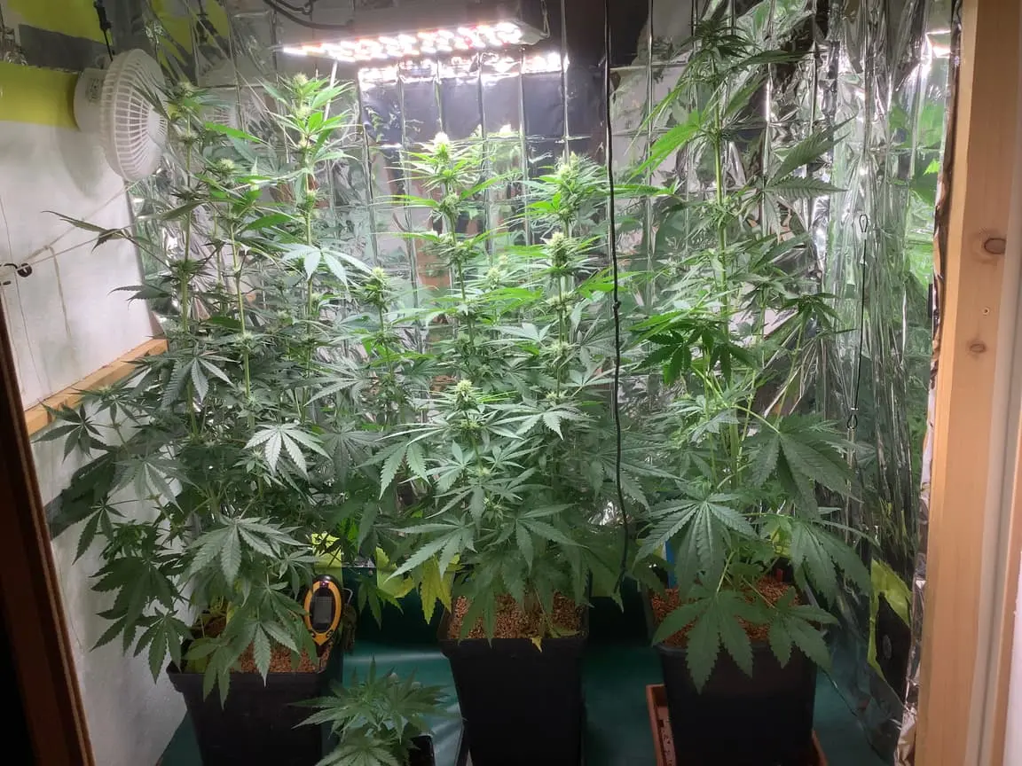so egal wie weit die kleine ist heute auf 12/12 Blüte umgestellt.Außerdem hab ich eine kleine Thrips entdeckt 😡😡😡ich hasse diese Viecher