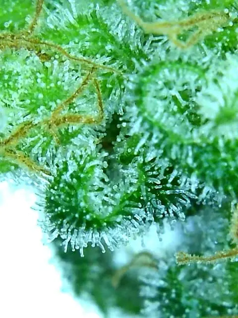 Ganz ähnlich sieht's auch bei mir aus...gestern zum ersten Mal mit einer Lupe nachgesehen welche eine 60fache Vergrößerungsleistung hat. Alle Trichome noch glasklar...naja, befinde mich ja auch noch am Anfang der 7. Blütewoche...2, 3 Wochen wird's wohl auch bei mir noch dauern.
