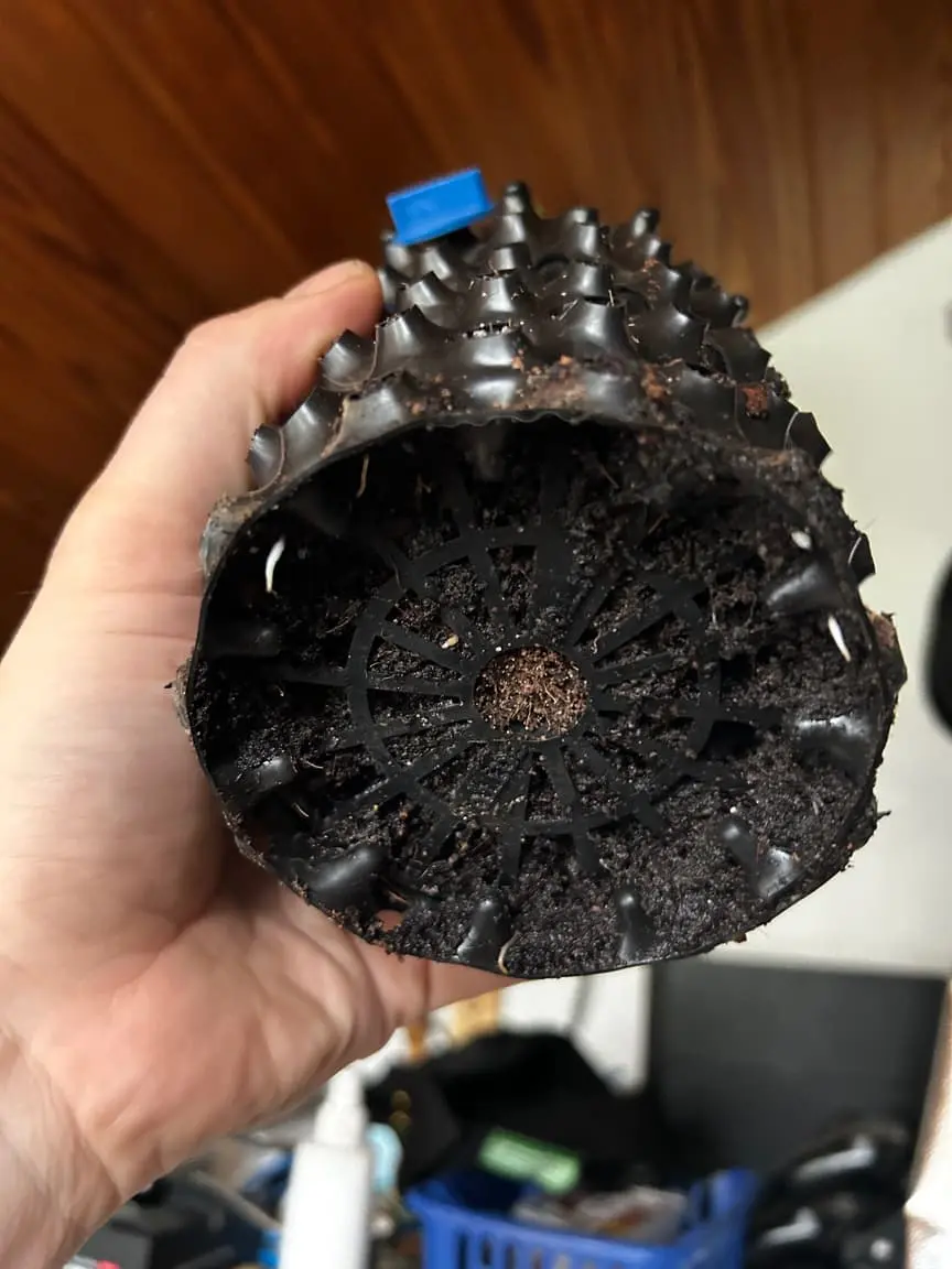 Eigentlich hatte ich ursprünglich vor sie etwa 4 Wochen in der Vegi zu lassen, daher auch die großen 18 Liter Töpfe. Nun ist mir seit schon gestern aufgefallen das bei allen schon die Wurzel unten im Topf zu sehen sind.