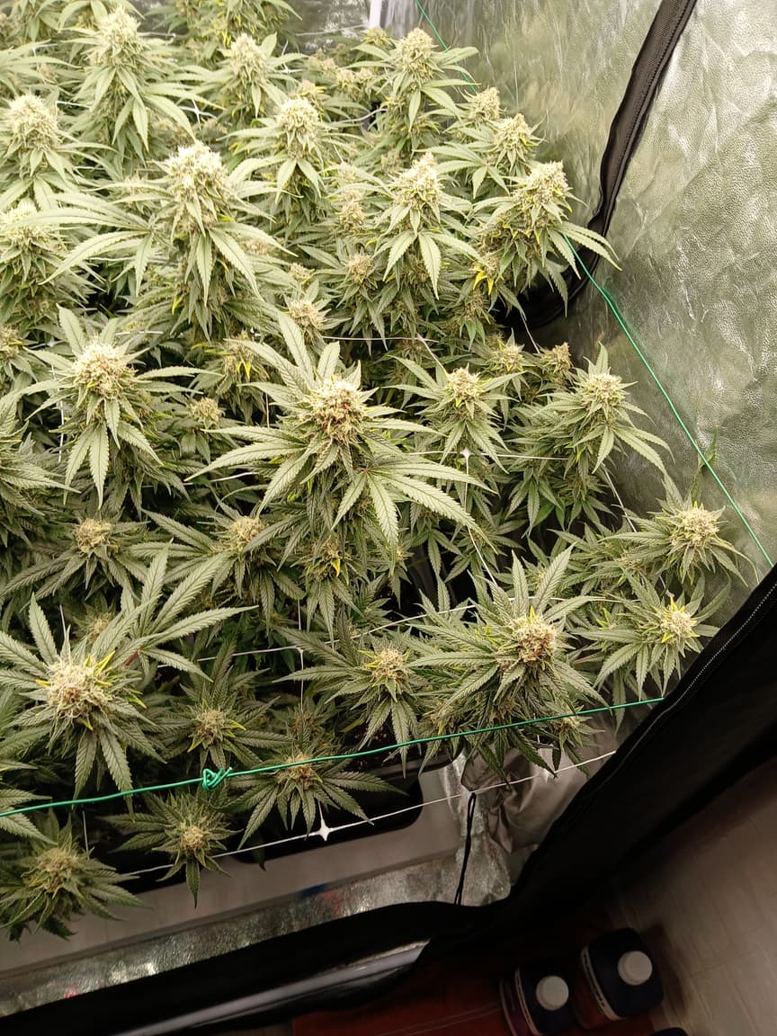 Hab' nochmal Pflanzendraht einmal um das GestĂ€nge gemacht, um vorsichtshalber noch eine Möglichkeit zu haben durch unterschiedliche Querverbindungen, grĂ¶ĂŸere Buds zu stĂŒtzen. Ich growe ja zum ersten mal, weiß auch nicht wie groß und schwer die möglicherweise noch werden.